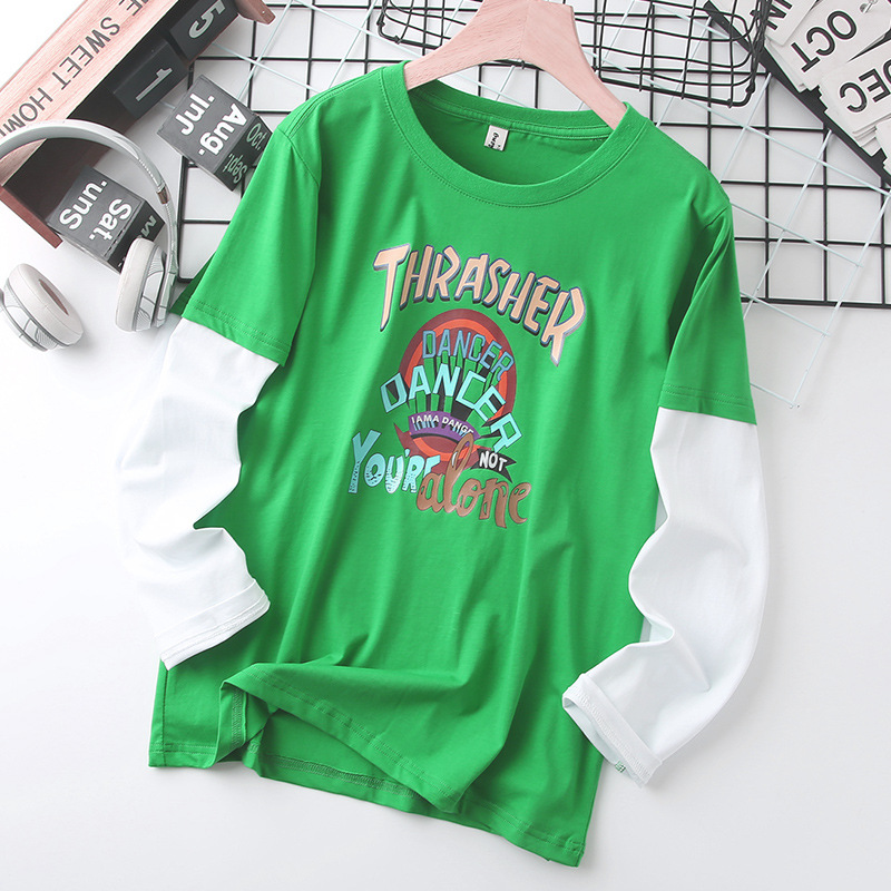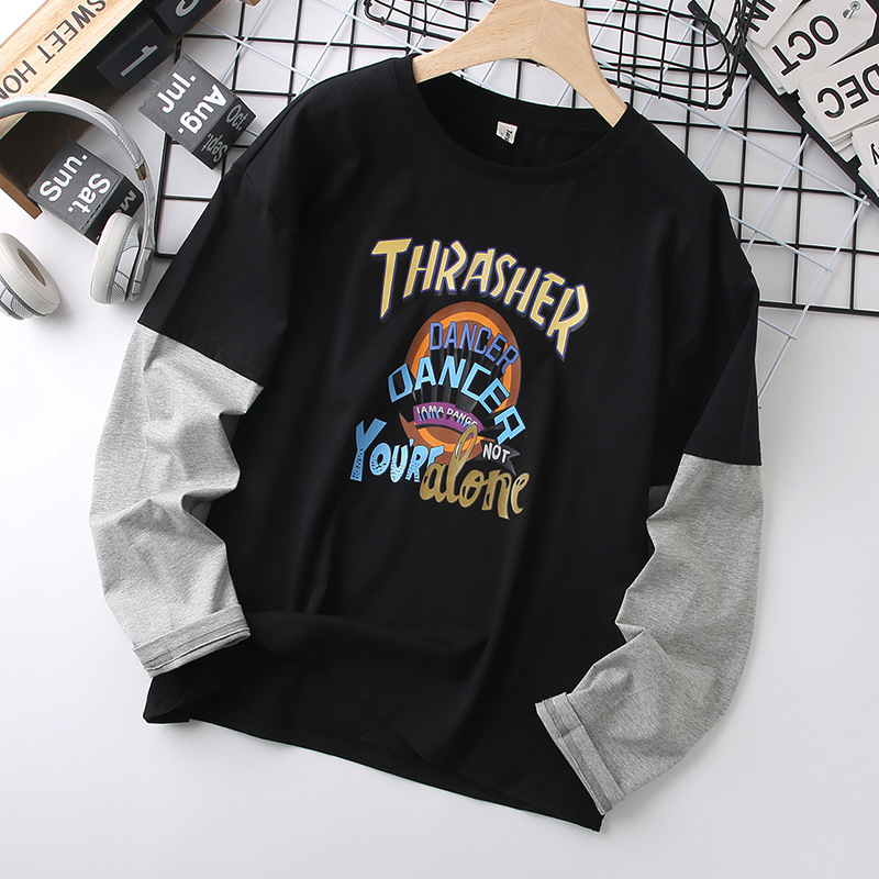 남자의 통통한 어린이 긴팔 티셔츠 플러스 사이즈 봄 착용 얇은 탑 대형 어린이 느슨한 플러스 사이즈 봄과 가을 면 탑 9스토어 가기