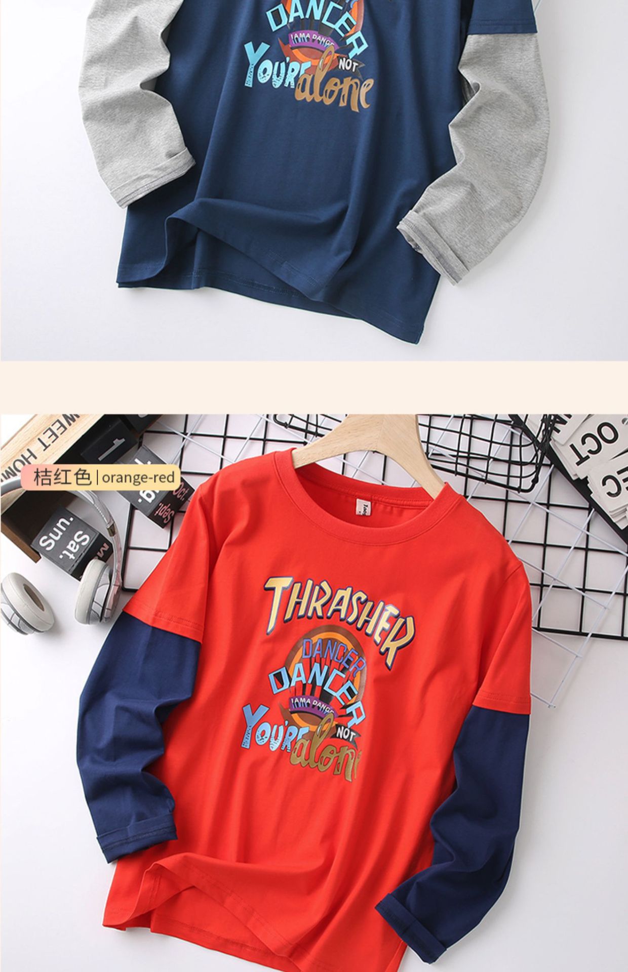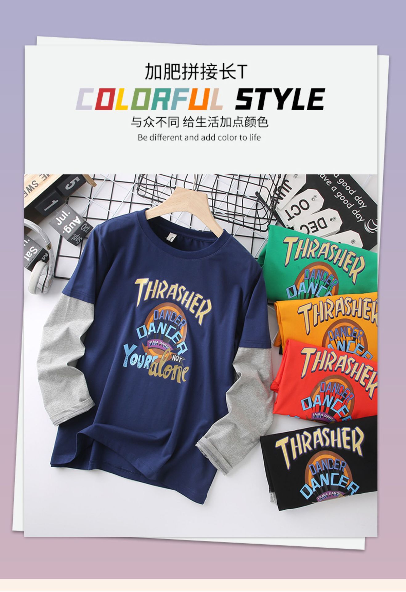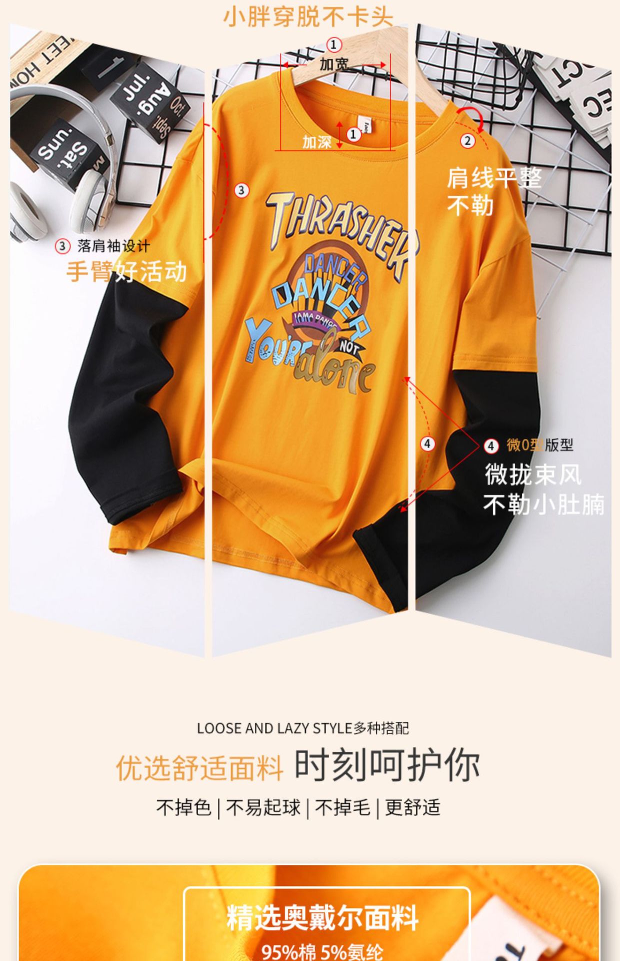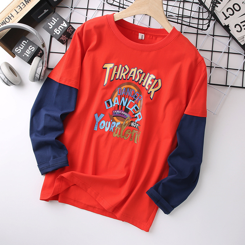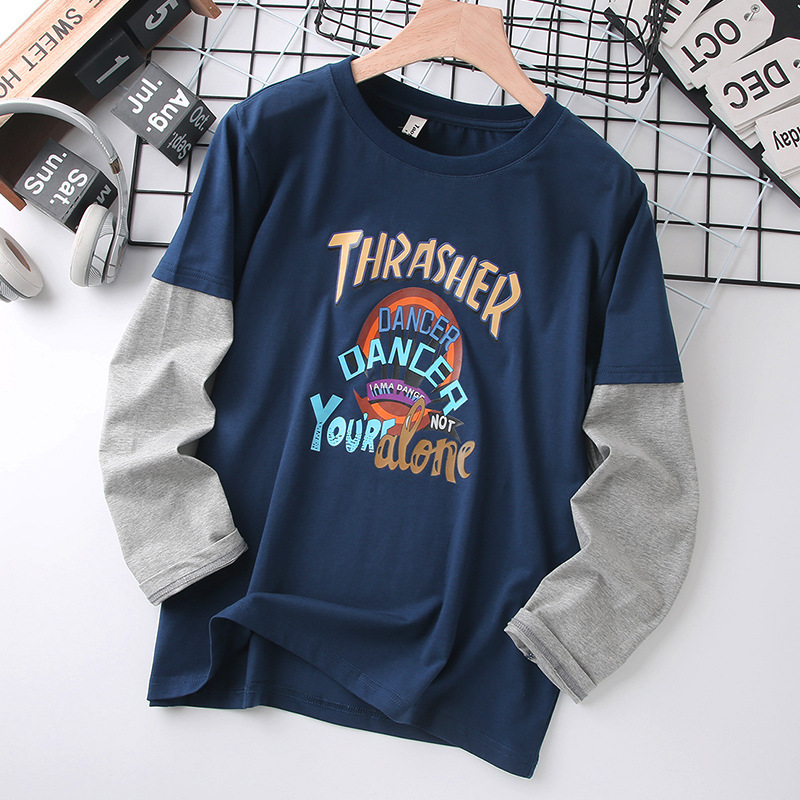 남자의 통통한 어린이 긴팔 티셔츠 플러스 사이즈 봄 착용 얇은 탑 대형 어린이 느슨한 플러스 사이즈 봄과 가을 면 탑 9
