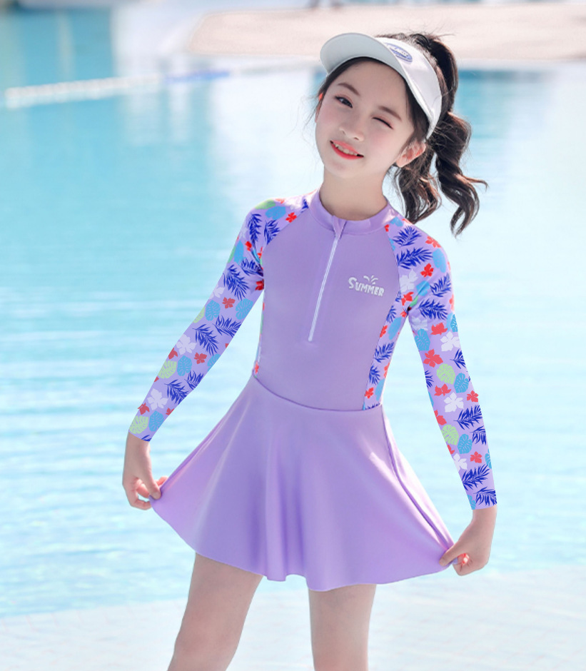 어린이 수영복 소녀 2024 새로운 여름 귀여운 아기 중대형 어린이 반팔 원피스 온천 수영복 세트