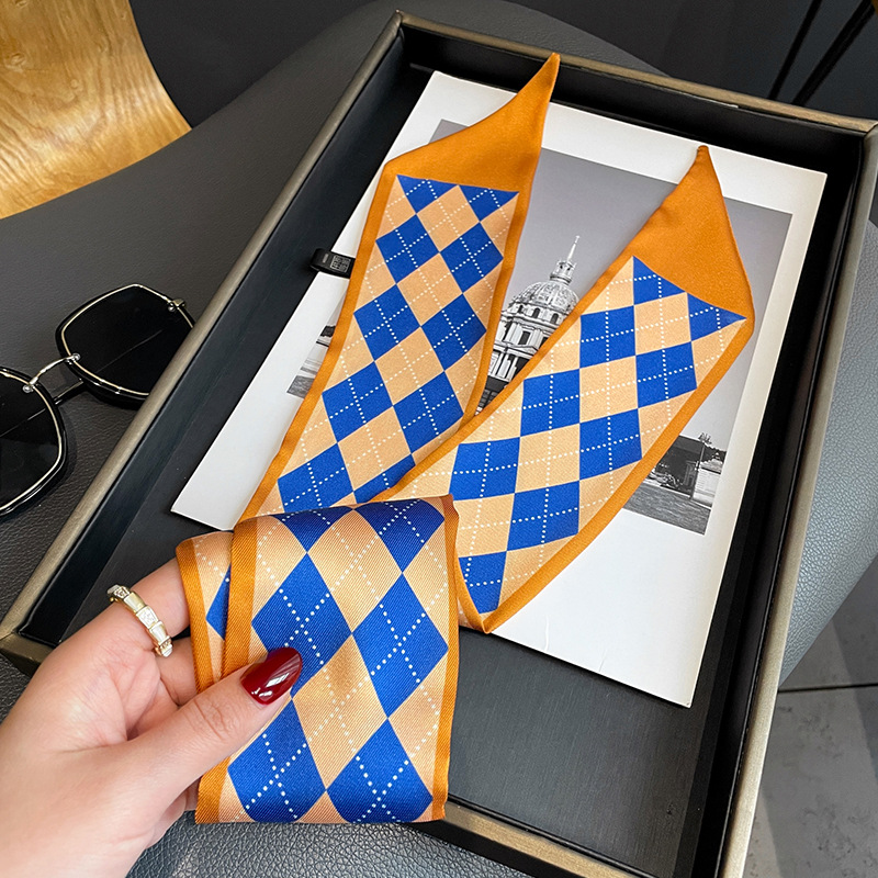 2022 새로운 다이아몬드 패턴 봄과 가을 서양식 얇은 좁은 긴 스카프 베벨 이중 목적 헤어 밴드 스카프 장식 사각 타월스토어 가기