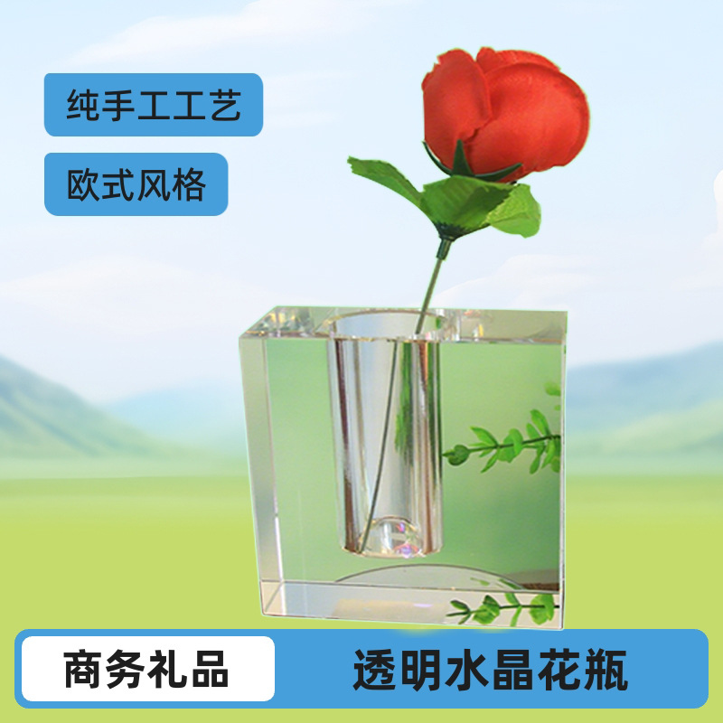 名称:加厚小号透明方型水晶花瓶百合玫瑰插花花器客厅卧室摆件