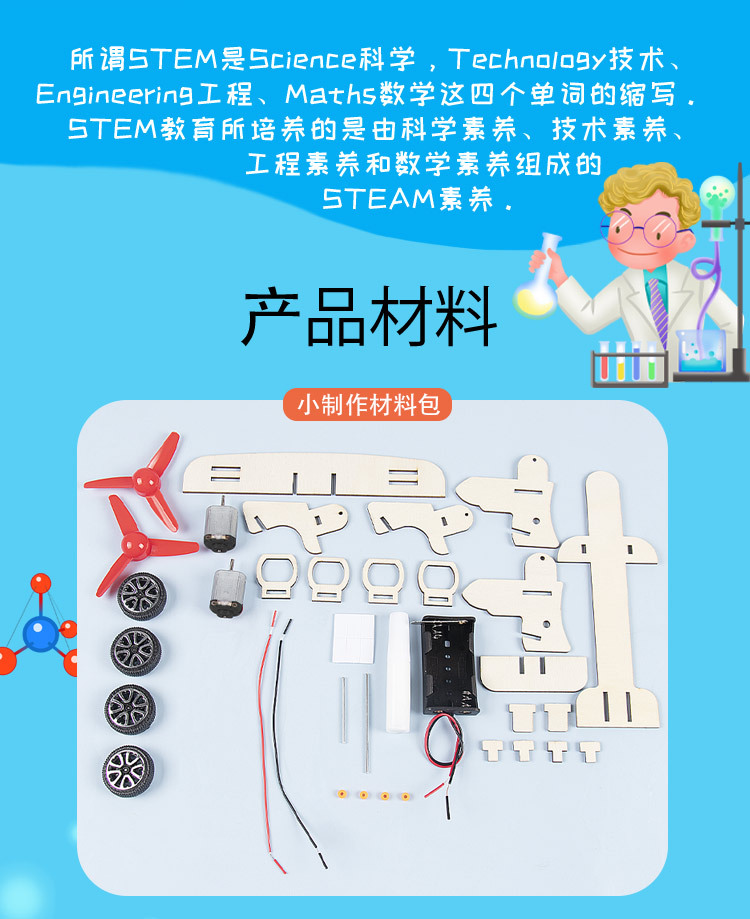 과학 실험 전기 트윈 엔진 택시 항공기 초등학교 수제 DIY 조립 기술 작은 만들기 어린이 장난감스토어 가기