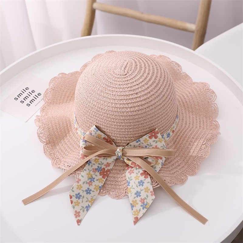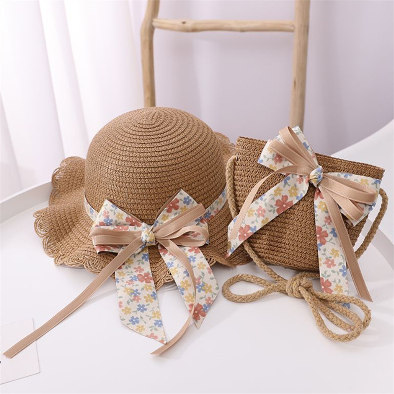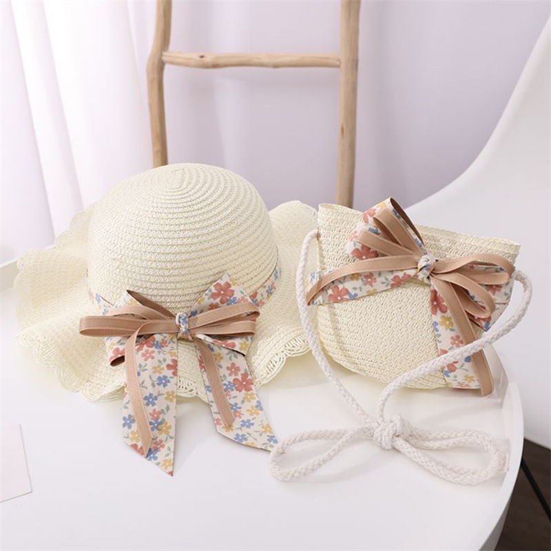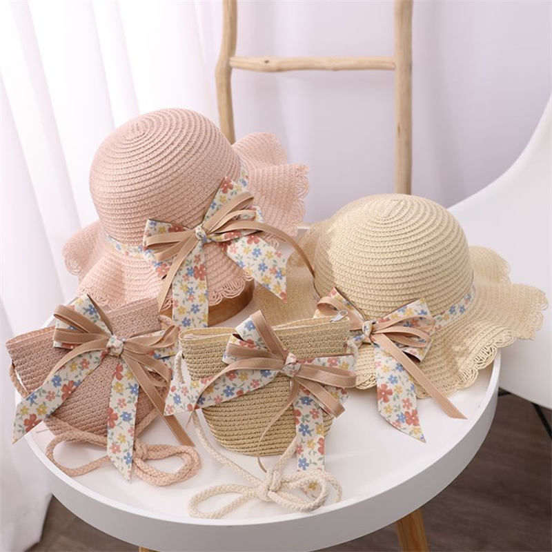어린이 여자의 여름 자외선 차단제 모자 공주 모자 해변 접는 태양 모자 어부 모자 밀짚 모자 가방 세트