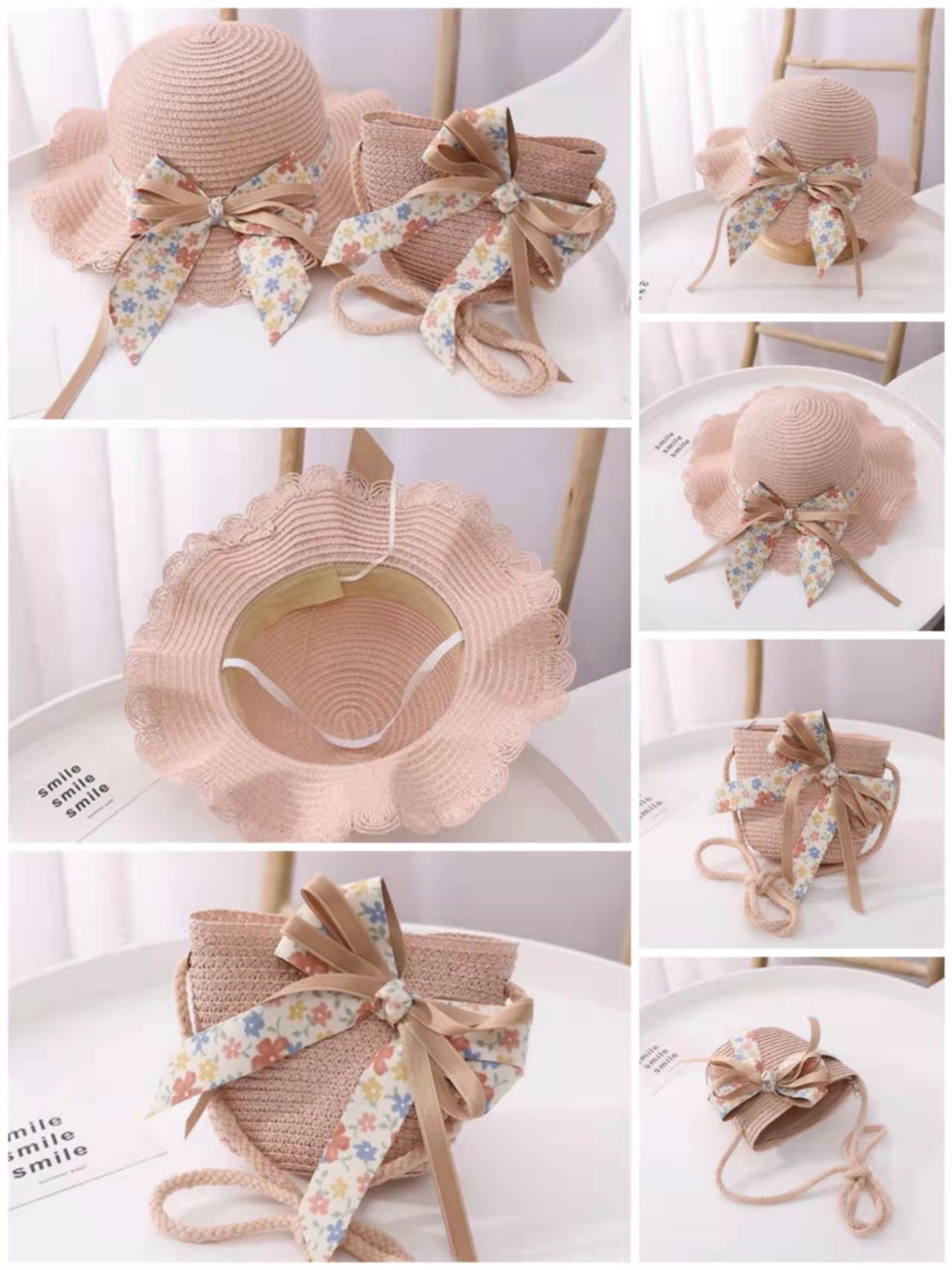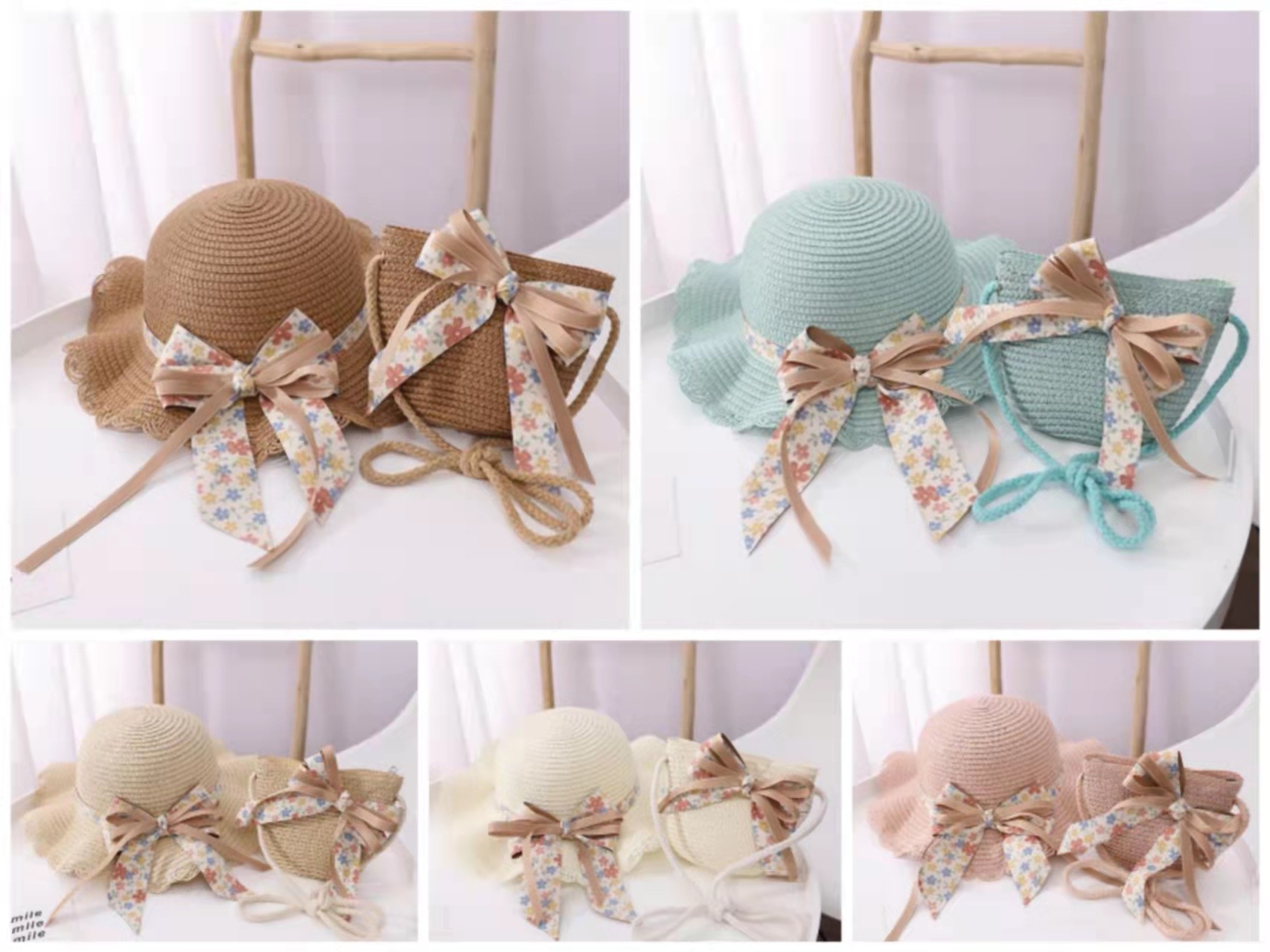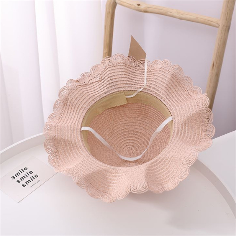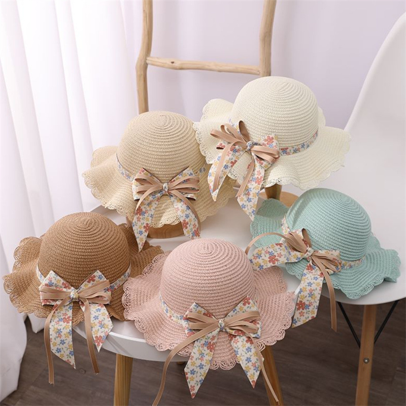어린이 여자의 여름 자외선 차단제 모자 공주 모자 해변 접는 태양 모자 어부 모자 밀짚 모자 가방 세트스토어 가기