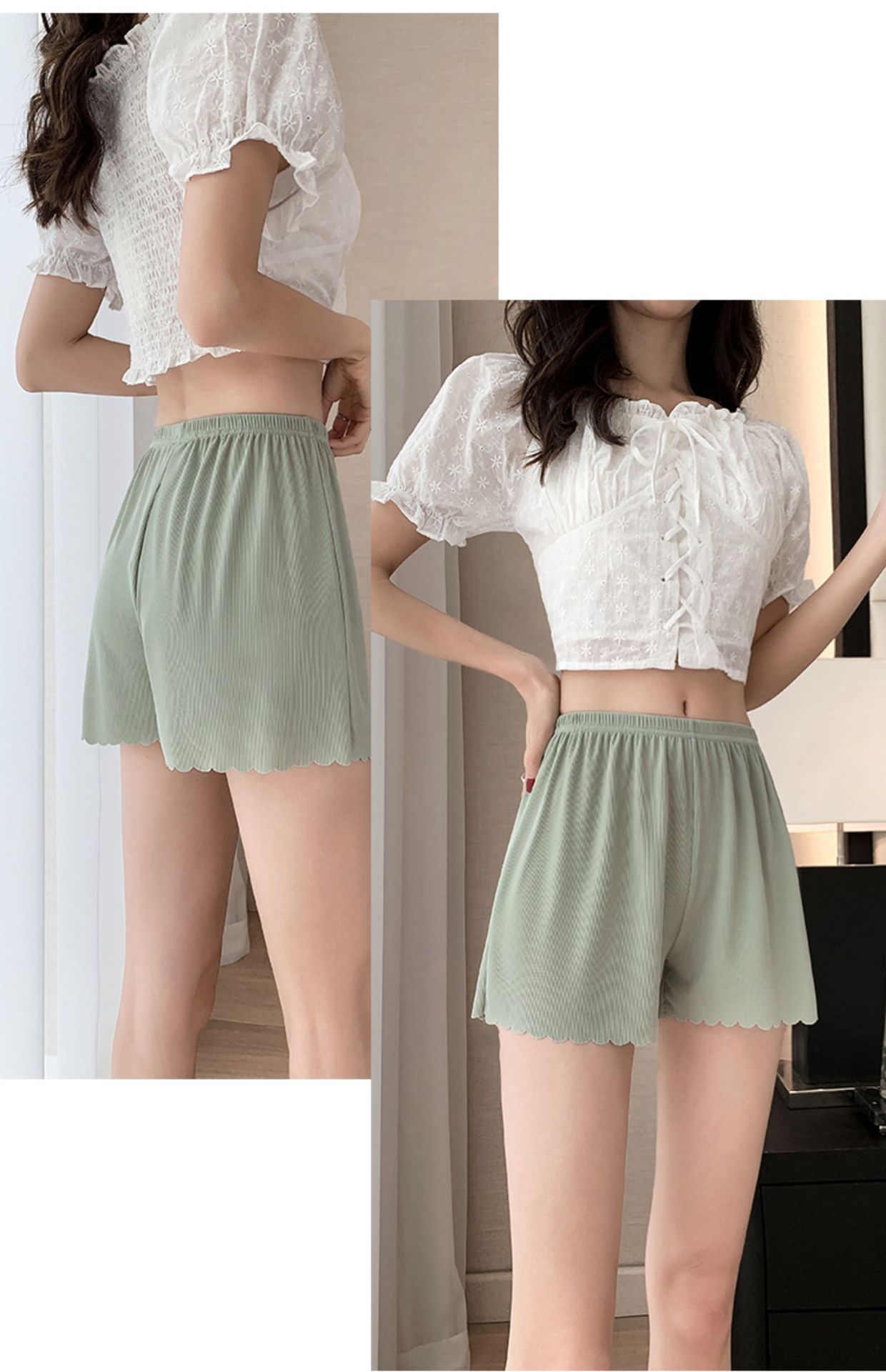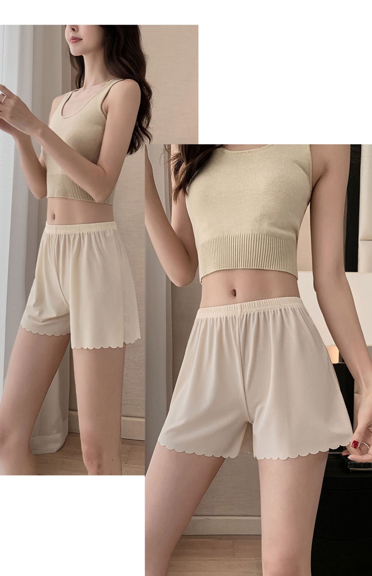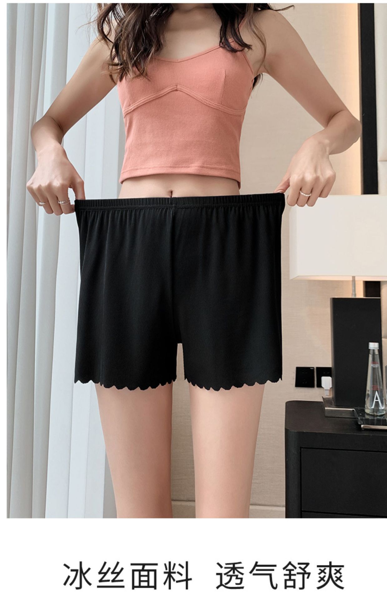 안전 바지 여성용 안티 라이트 2022 봄과 여름 새로운 스레드 느슨한 반바지 착용 아이스 실크 원활한 레깅스스토어 가기