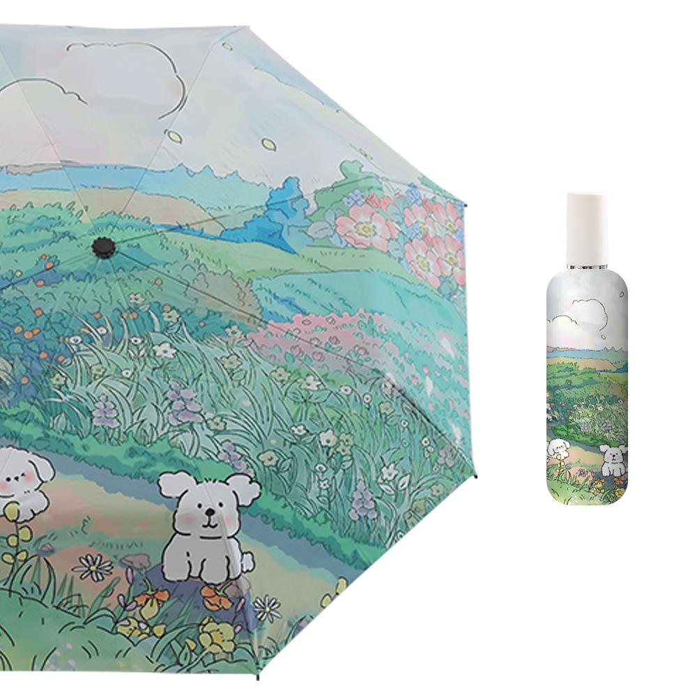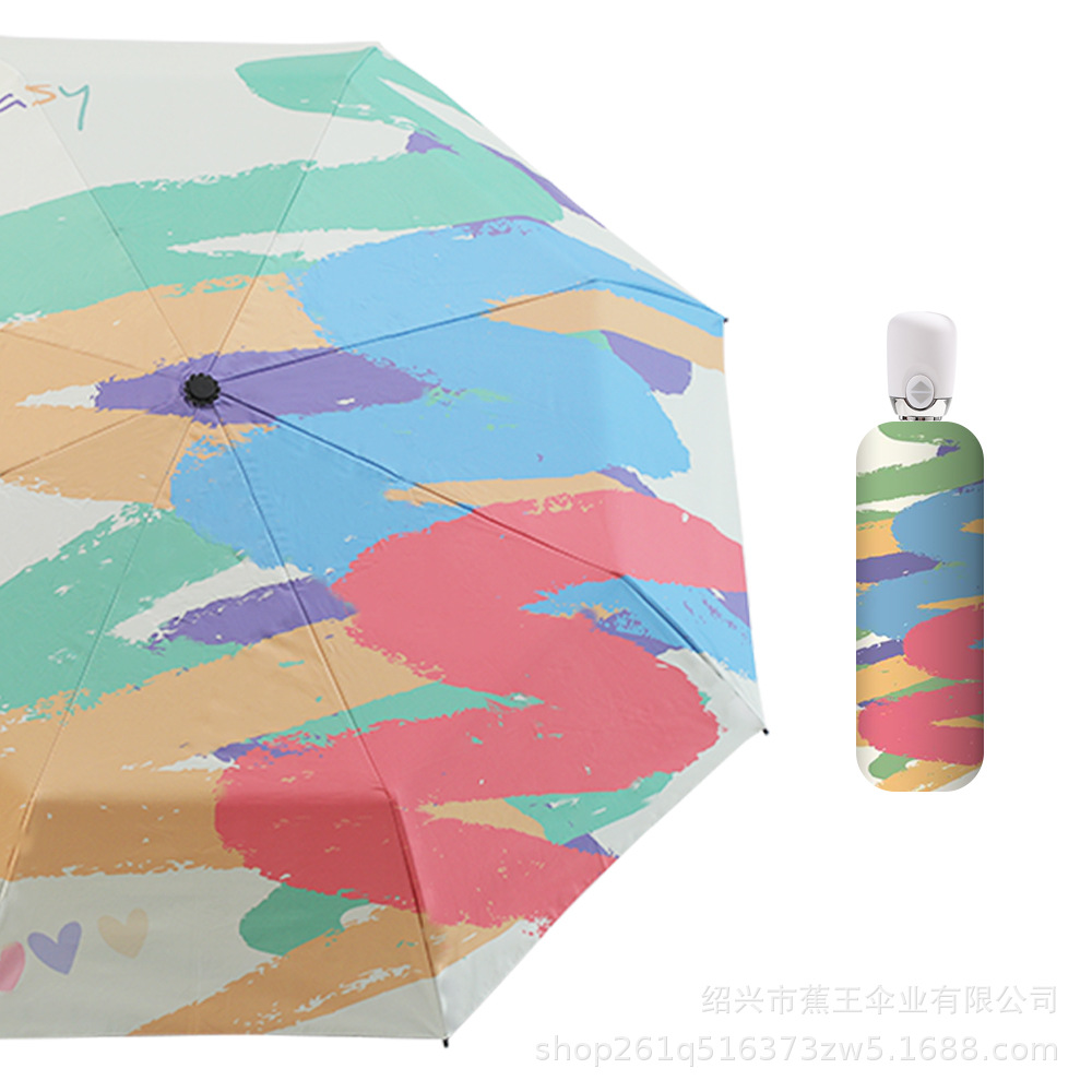 여성용 완전 자동 유화 우산 ins 문학 접이식 태양 우산 태양 보호 자외선 차단 우산