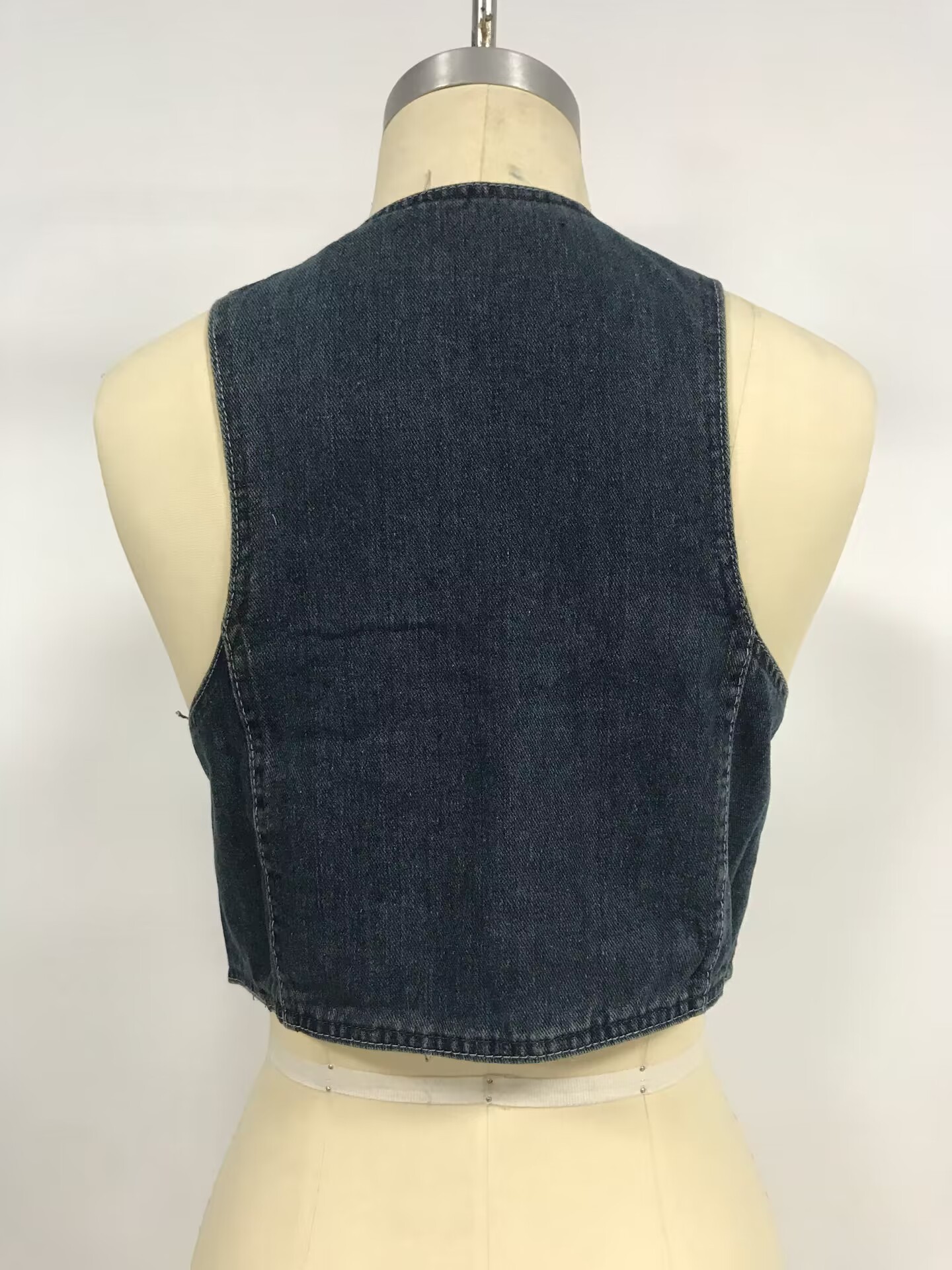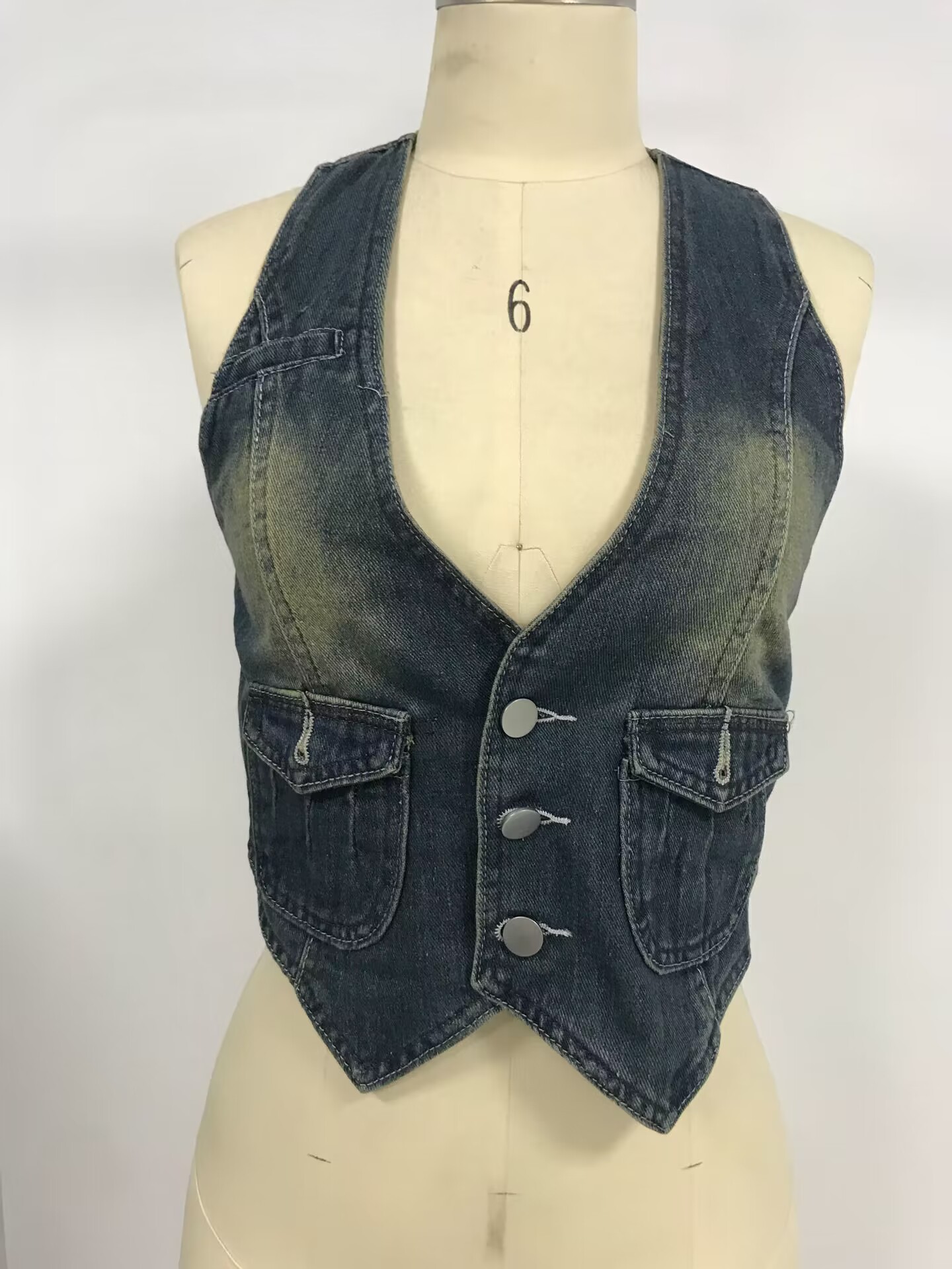 유럽과 미국의 대외 무역 국경 간 공급 슬림 복고풍 슬림 데님 조끼 여성스토어 가기