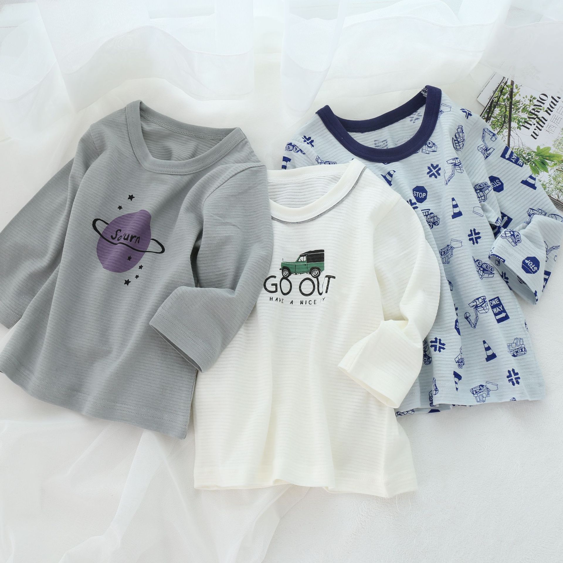 일본의 새로운 봄과 여름 얇은 어린이 가정복 수평면 부드러운 통기성 땀 흡수 소년 재킷 긴 소매스토어 가기