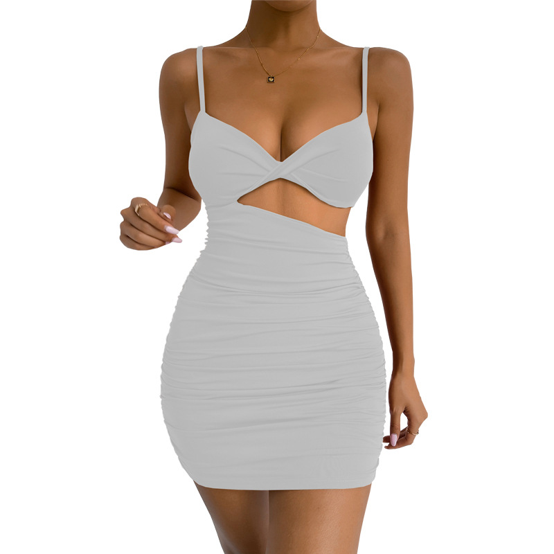 2025 유럽과 미국의 플러스 사이즈 여성 의류 아마존 허리 노출 서스펜더 스커트 섹시한 대외 무역 슬림 플리츠 힙 커버 드레스
