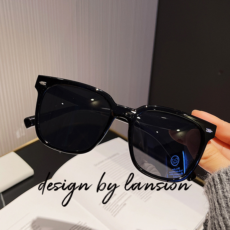 인터넷 연예인 선글라스 남성용 대형 프레임 얼굴을 덮는 사각 투명 차 선글라스 자외선 차단 Instagram 스타일 큰 얼굴 유행