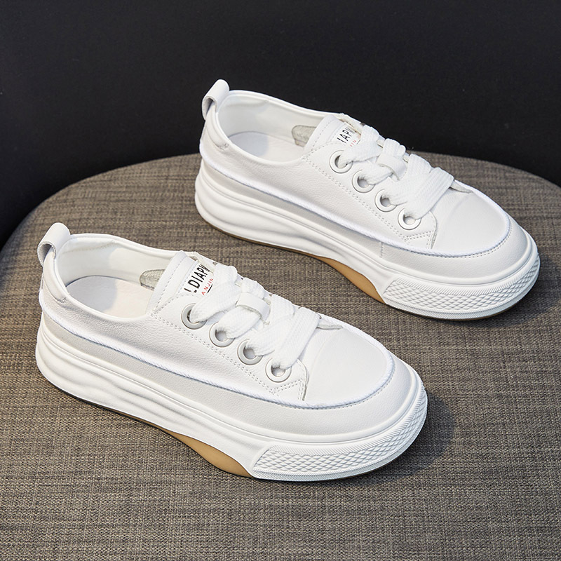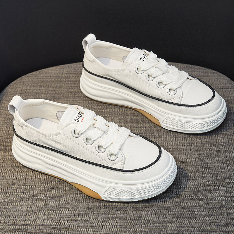 2025 봄 신상 한국식 정품 가죽 흰색 신발, 다용도 플랫폼 캐주얼 신발, 스포츠 스타일 운동화, 여성용 부드러운 밑창 트렌디 신발스토어 가기