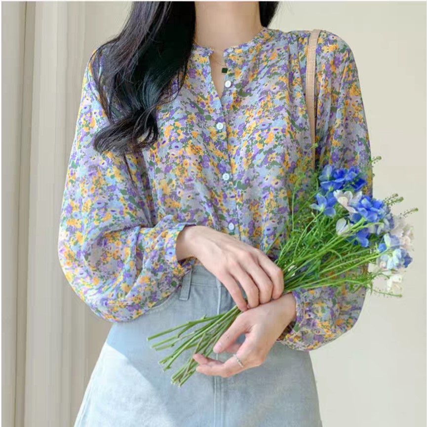 꽃 쉬폰 셔츠 여자의 슈퍼 요정 새로운 디자인 감각 긴 소매 인쇄 서양 스타일 최고 달콤한 작은 셔츠스토어 가기