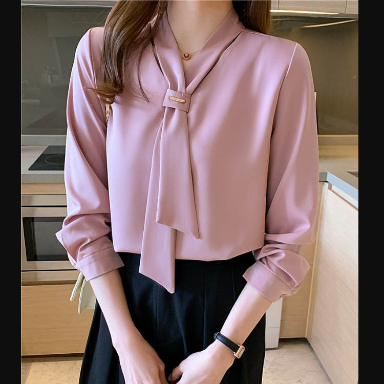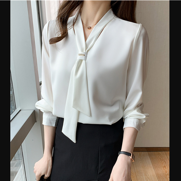 여성용 화이트 셔츠 2021 봄 여름 새로운 디자인 틈새 탑 전문 캐주얼 긴팔 기질 쉬폰 셔츠스토어 가기