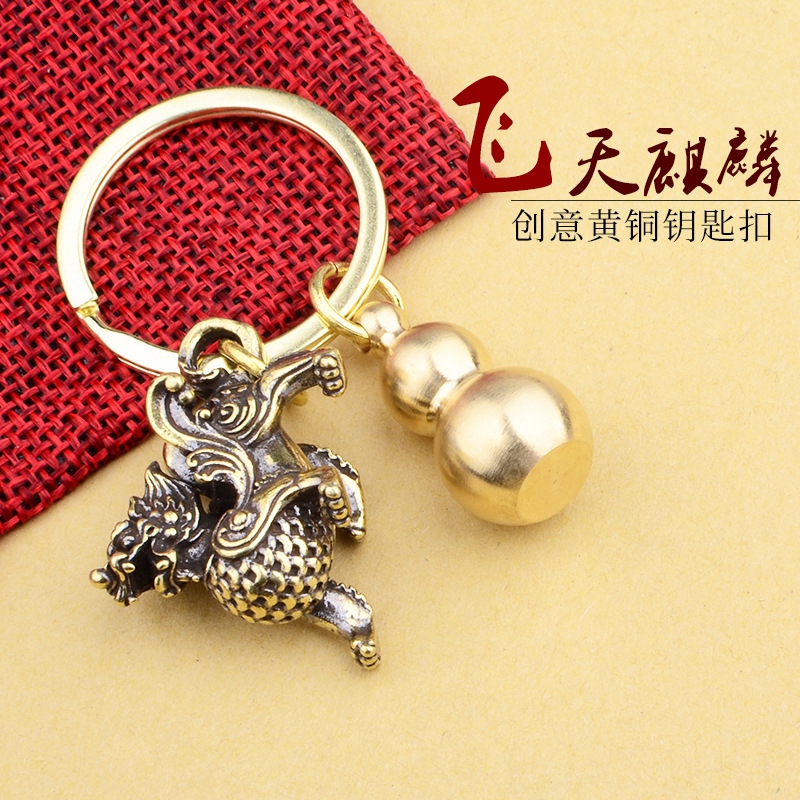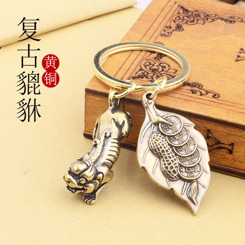 원시 부의 잎 열쇠 고리 황동 조롱박 펜던트 흔들리는 소리 Luban 폭발 이우 작은 상품 제조 업체스토어 가기