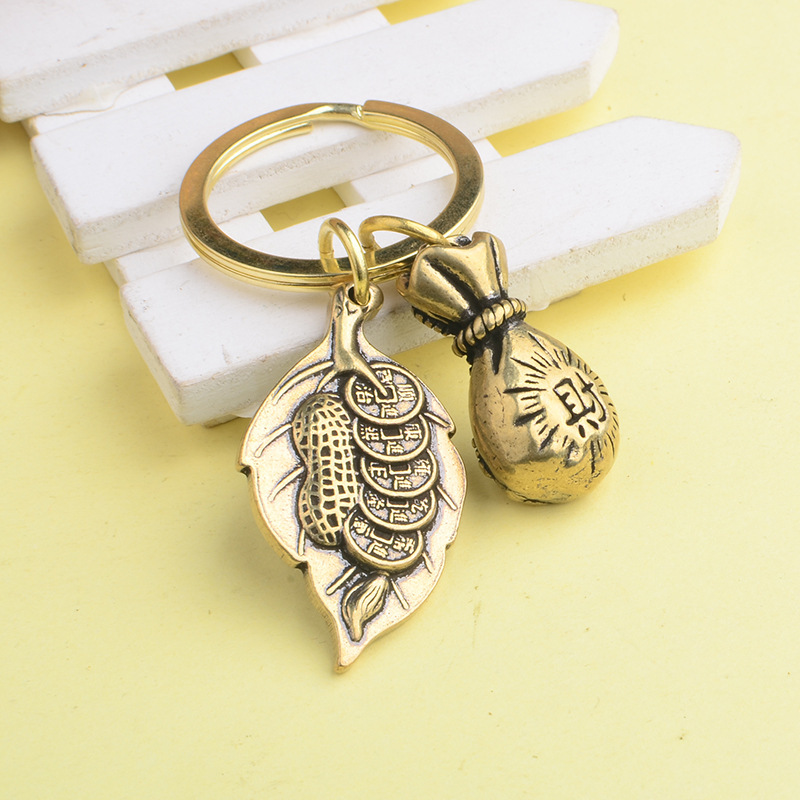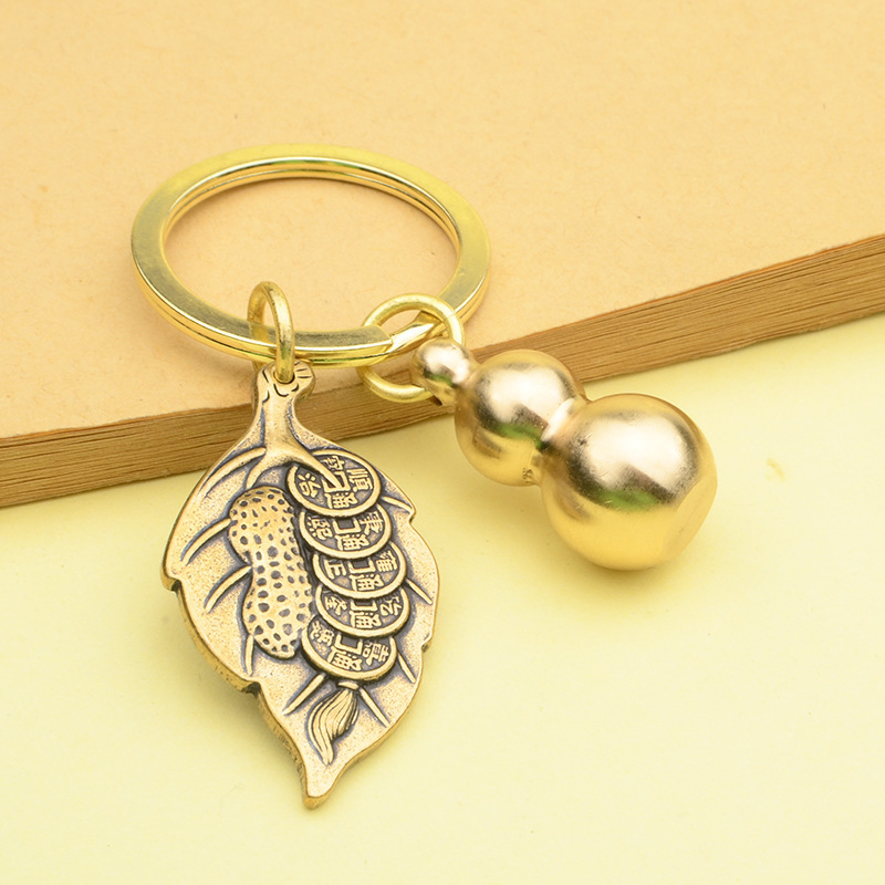 一叶生财树叶钥匙扣黄铜葫芦挂件抖音鲁班爆款义乌小商品厂家