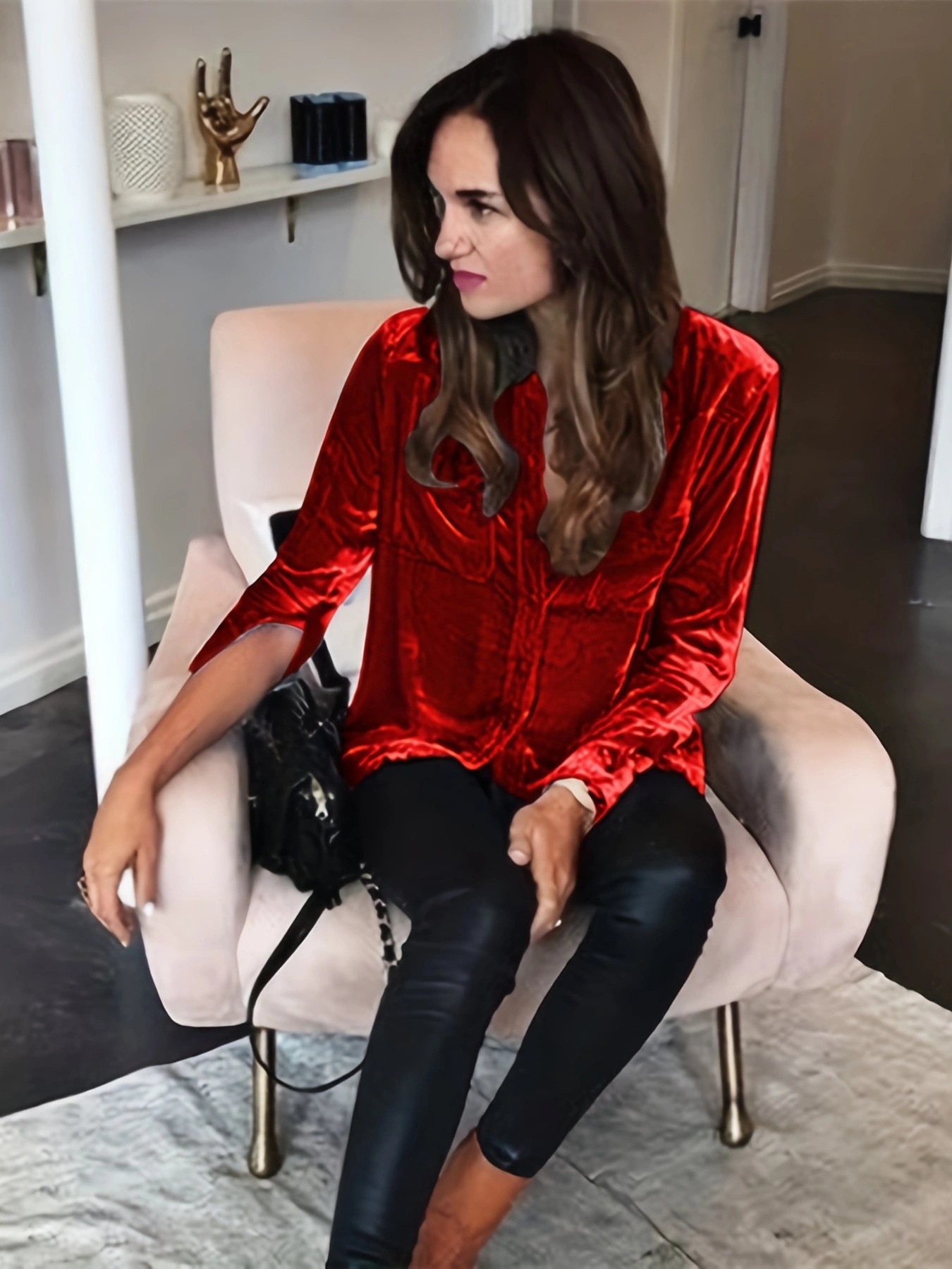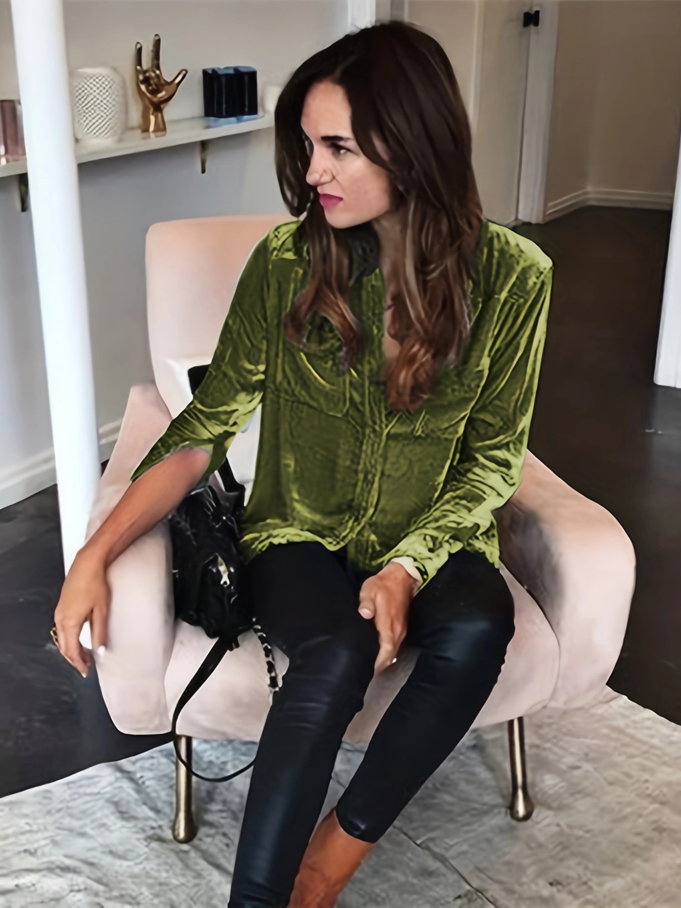유럽 및 미국 수출용 신상 여성 2026 봄 가을 벨벳 셔츠 긴팔 라펠 여성용 골드 벨벳 탑 셔츠 인기 상품스토어 가기