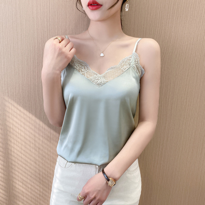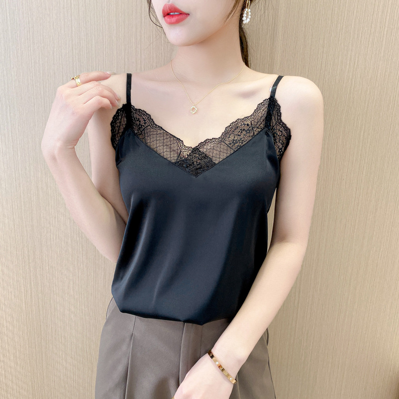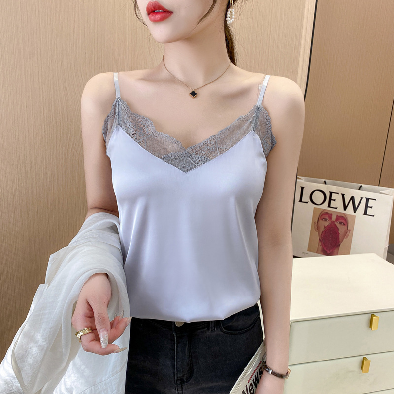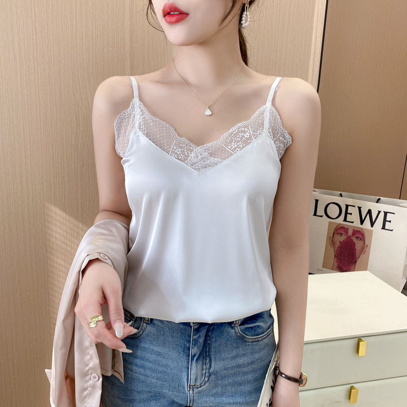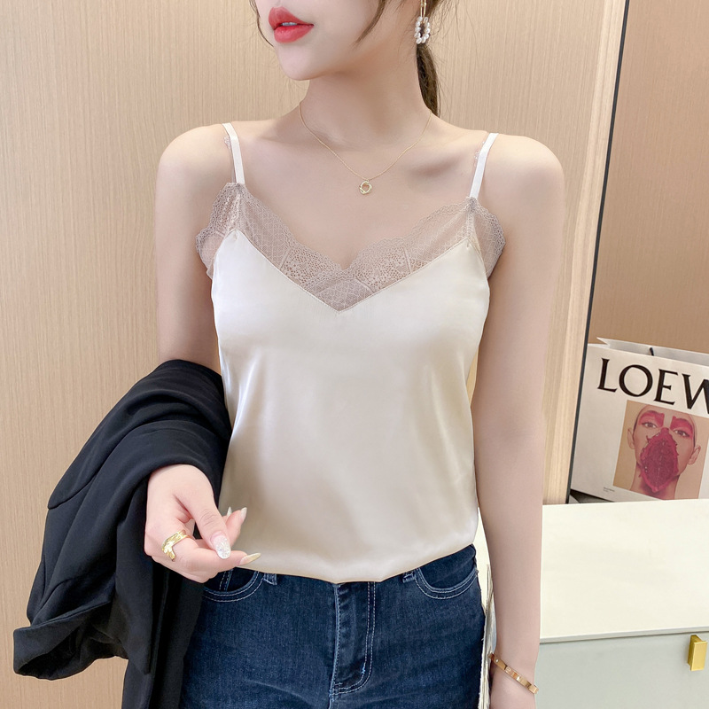 캐미솔 여성용 내부 조끼 여름 소녀의 내부 레이스 실크 새틴 작은 캐미솔 외부 탑 베이스 셔츠스토어 가기