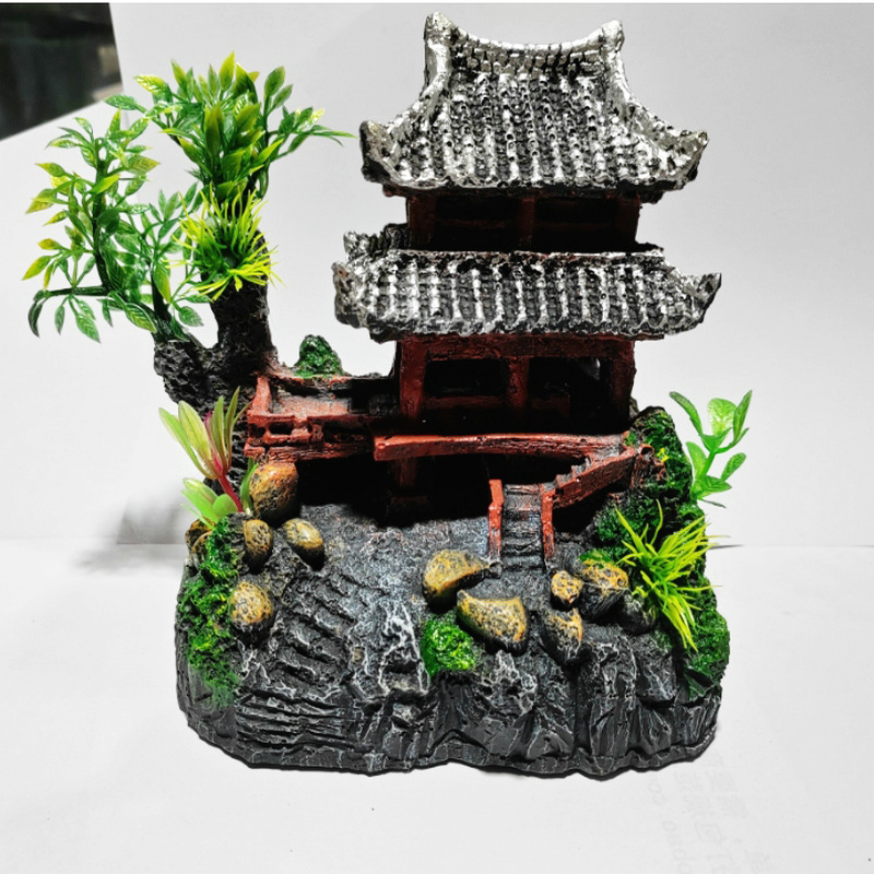 어항 장식 수족관 조경 수지 공예 하우스 rockery 장식품 장난 오두막 물 마을 구름 크레인 빌딩스토어 가기
