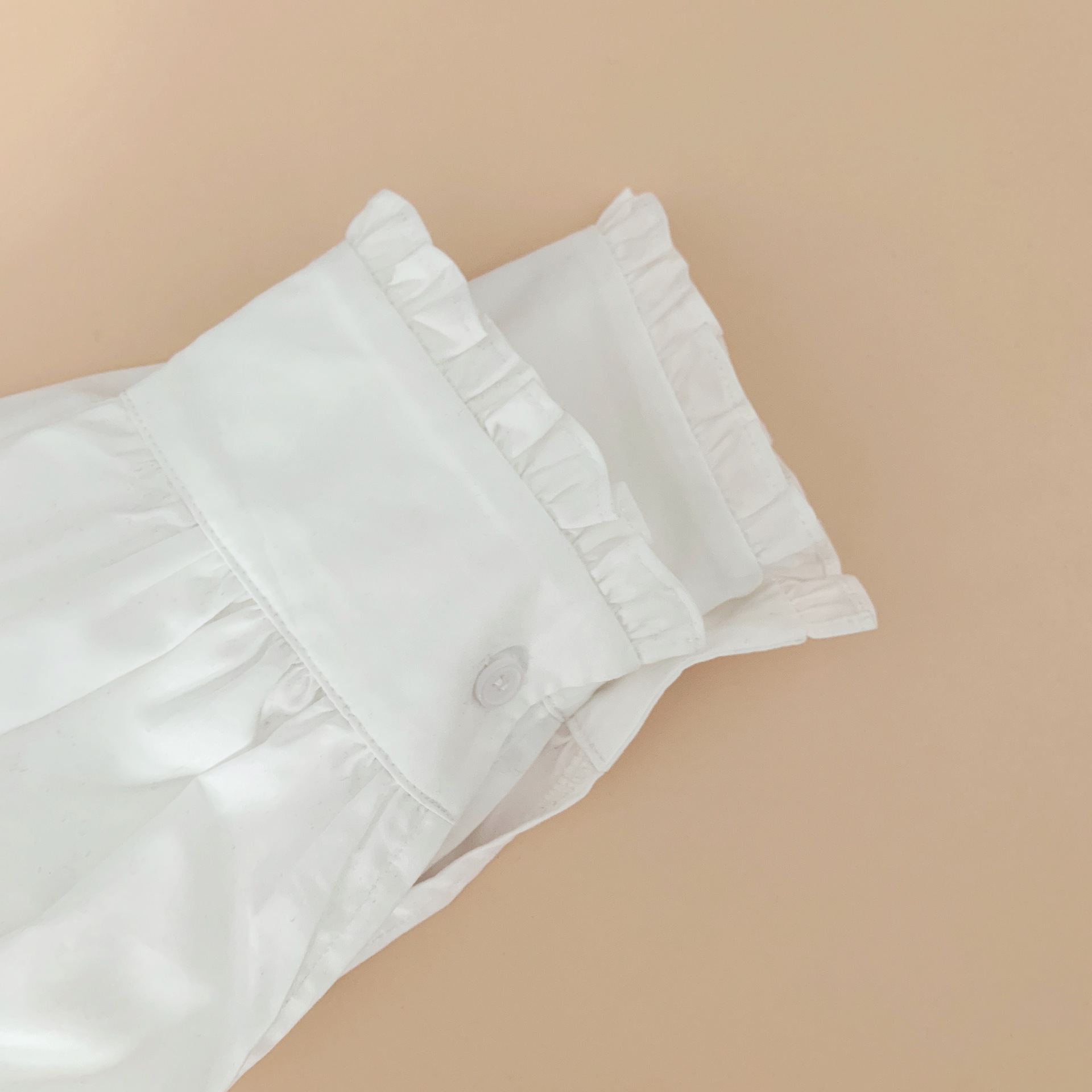 우드 이어 엣지가있는 여성용 플리츠 화이트 셔츠 봄과 가을 디자인 센스 느슨한 웨스턴 스타일 스탠드 칼라 탑 우아한베이스 셔츠 트렌디