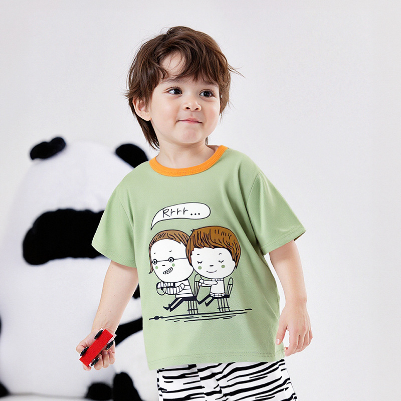 어린이 반소매 세트 면 소녀 새로운 여름 착용 소년 티셔츠 반바지 아기 한국어 반 소매 아동복 도매스토어 가기