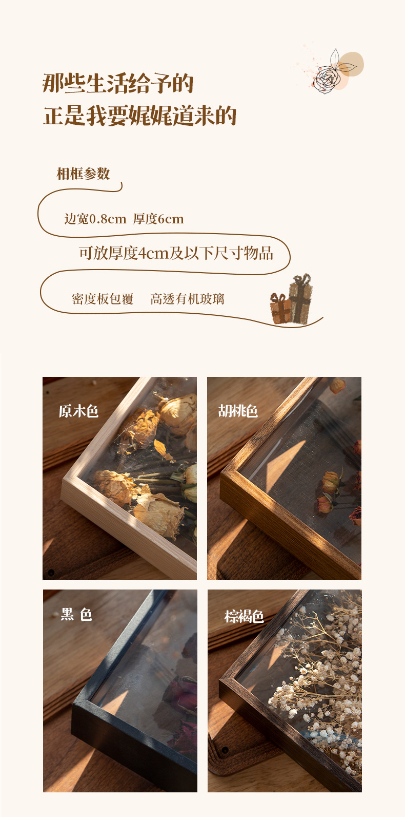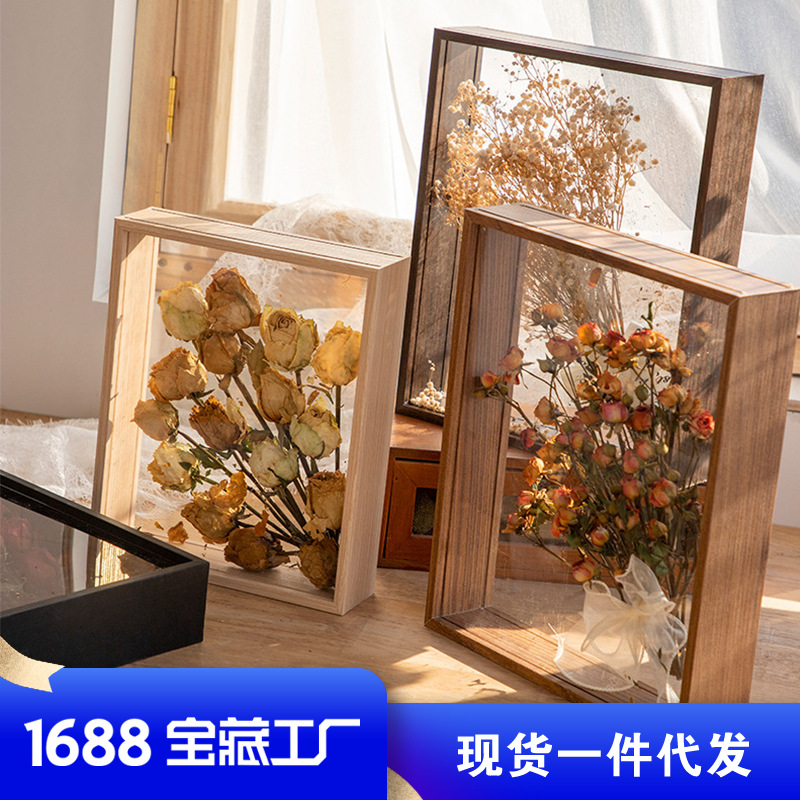 diy手工制作干花相框立体中空标本展示框A4摆台双面透明玻璃相框