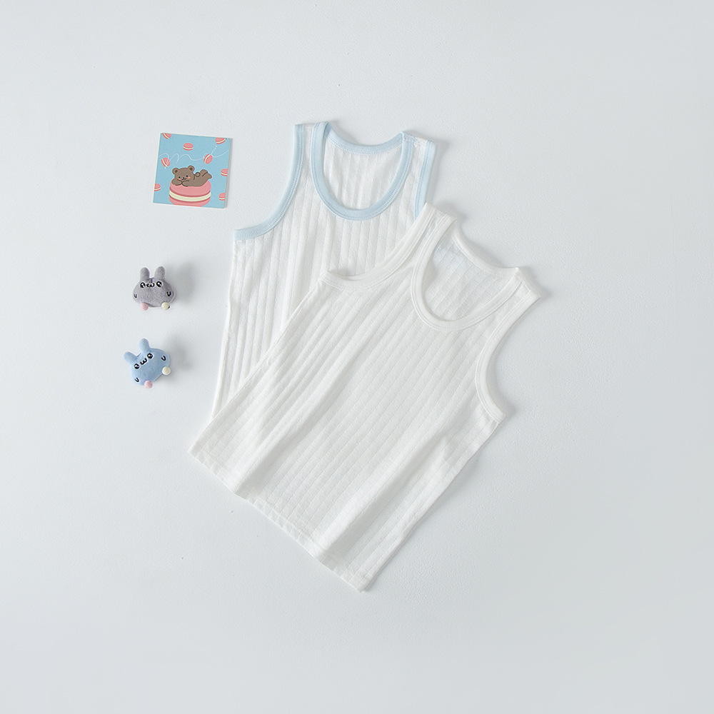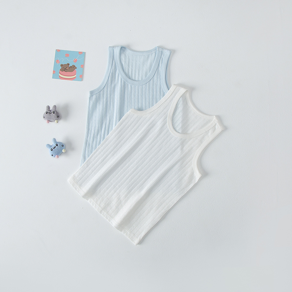 순수한 색상 원활한 어린이 조끼 소년의 아기의 순면 얇은 통기성 민소매 셔츠 여성의 보물 자카드 크루넥 베이스 탑