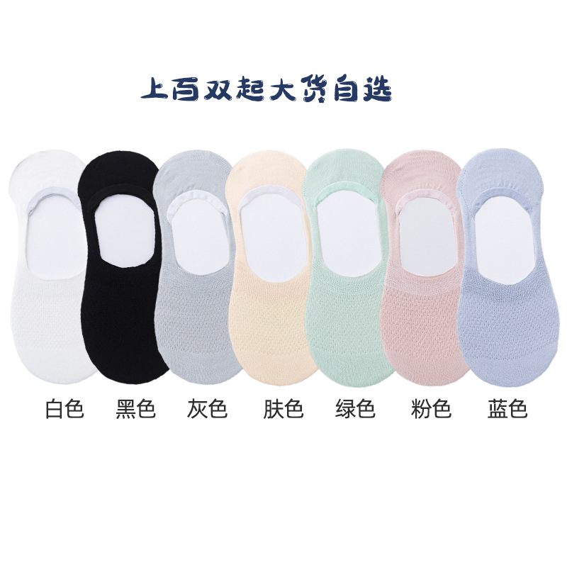 Zhuji 단색면 양말 메쉬 양말은 얕은 보이지 않는 통기성 양말 여성 도매 얇은 여름 보트 양말에서 떨어지지 않습니다.스토어 가기