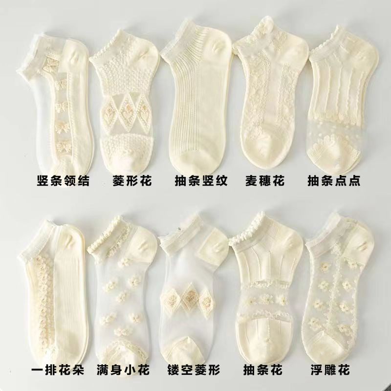 注意:标价全部为裸袜的价格(带卡板),需要独立吊牌和opp袋联系客服另外收费,网眼、蕾丝、菱形网格和魔术袜这4款脚背带硅胶,其他船袜均没有