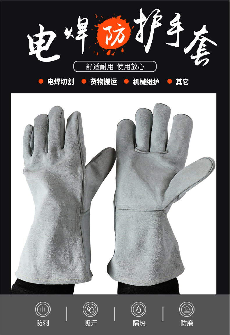 긴 소가죽 용접 장갑 도매 전체 가죽 2 층 가죽 용접기 장갑 통기성 땀 흡수 따뜻한 노동 보호 장갑
