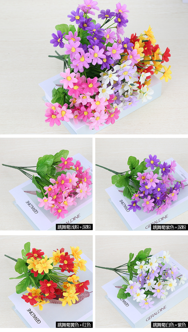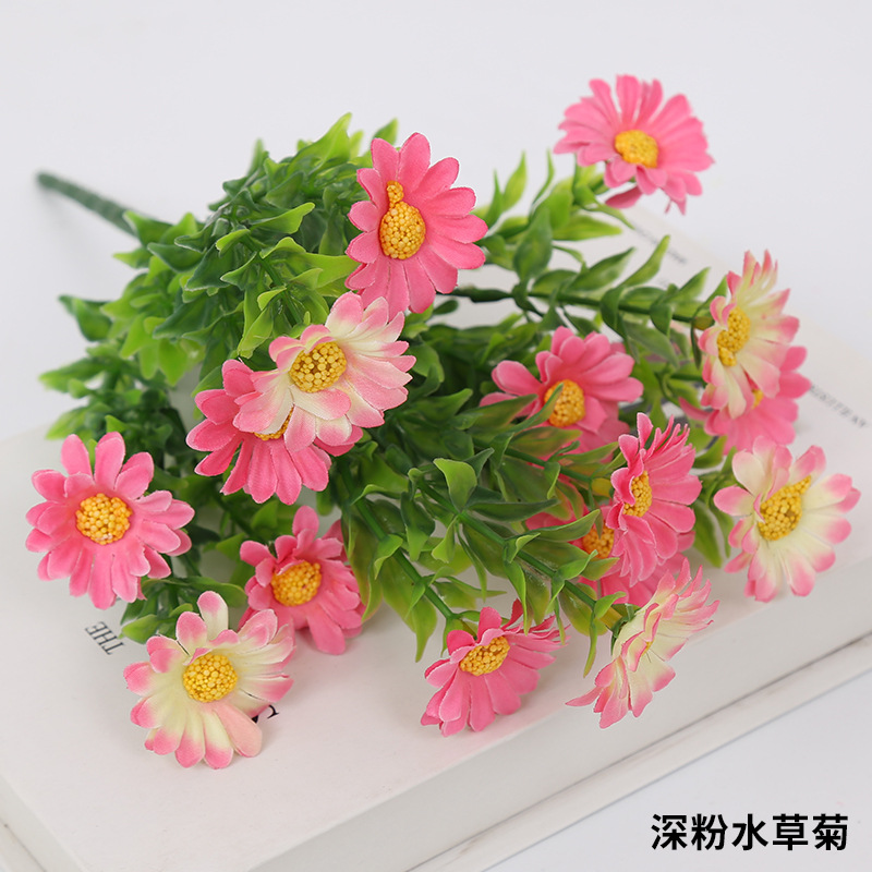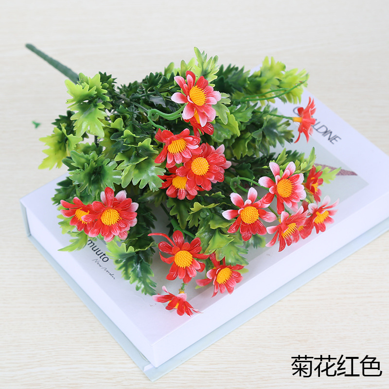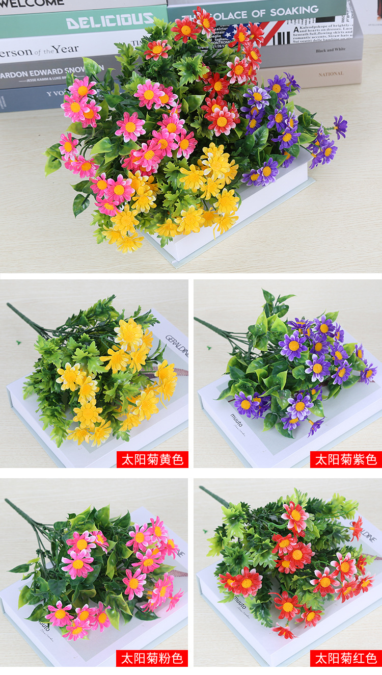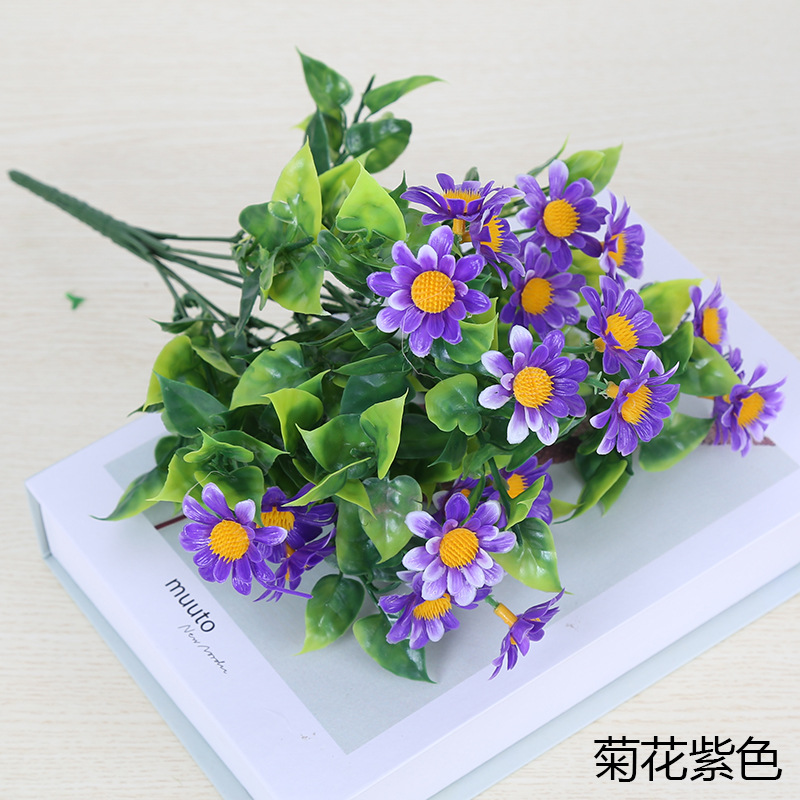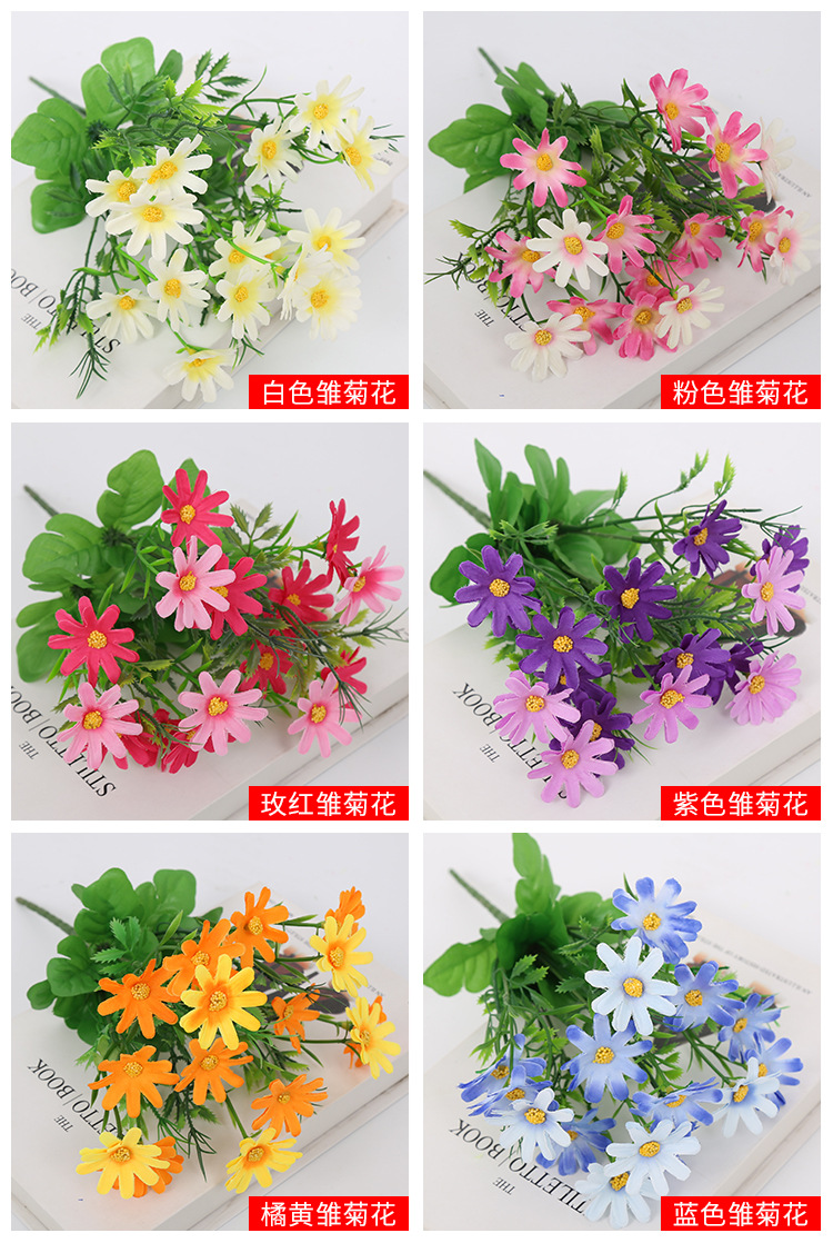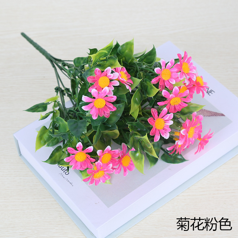 인공 꽃 꽃다발 단일 플라스틱 데이지 장미 실크 천 말린 꽃 침대 울타리 작은 손잡이 꽃 배열 목가적 인 장식