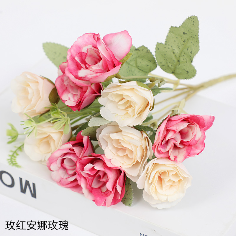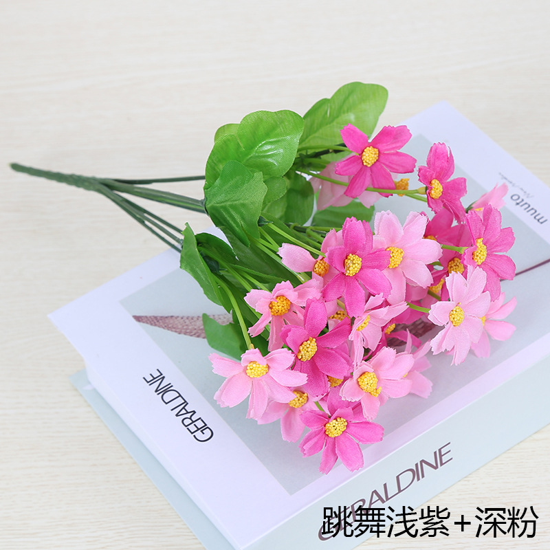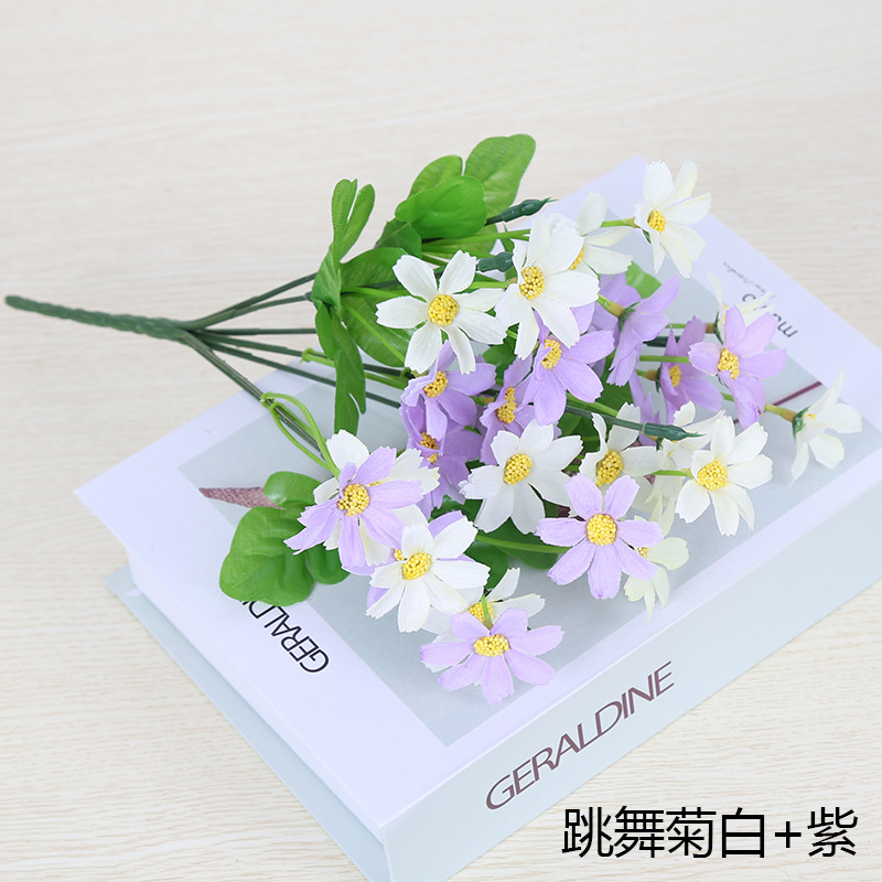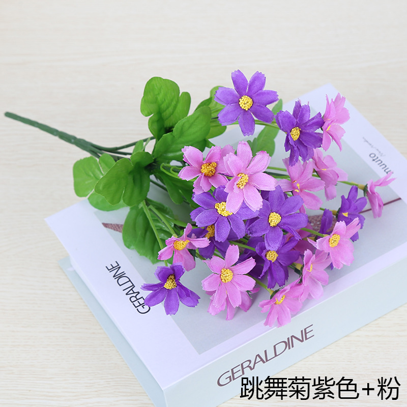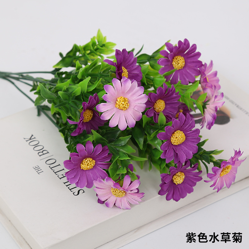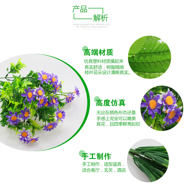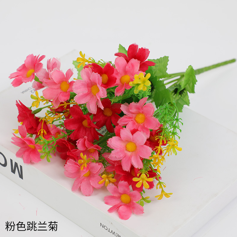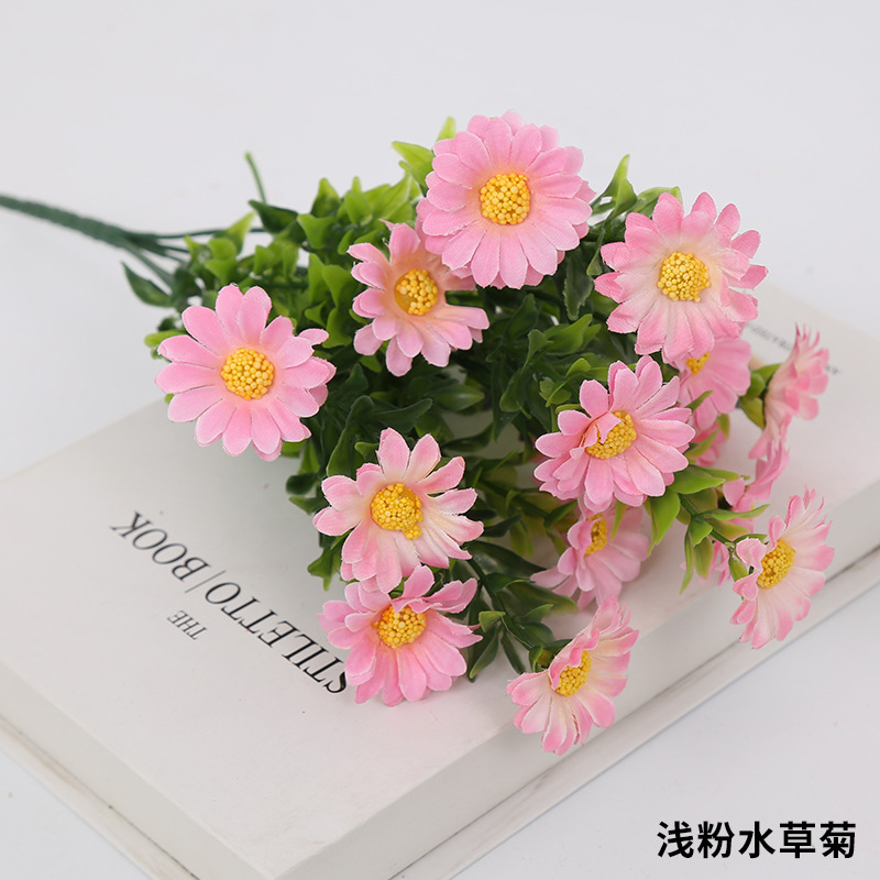 인공 꽃 꽃다발 단일 플라스틱 데이지 장미 실크 천 말린 꽃 침대 울타리 작은 손잡이 꽃 배열 목가적 인 장식