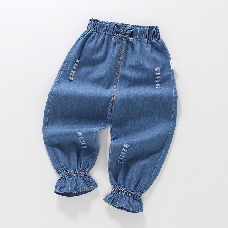 2022 봄과 여름 소녀 모기 방지 바지 한국식 어린이 만화 수 놓은 얇은 발목 묶인 바지스토어 가기