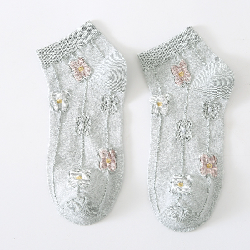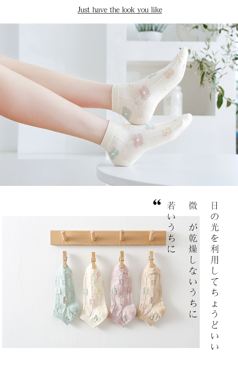 새로운 스타일 양말 여성용 입체 작은 꽃 봄과 여름 보트 양말 여성용 마카롱 컬러 목가적 스타일 면 양말 여성용 양말스토어 가기
