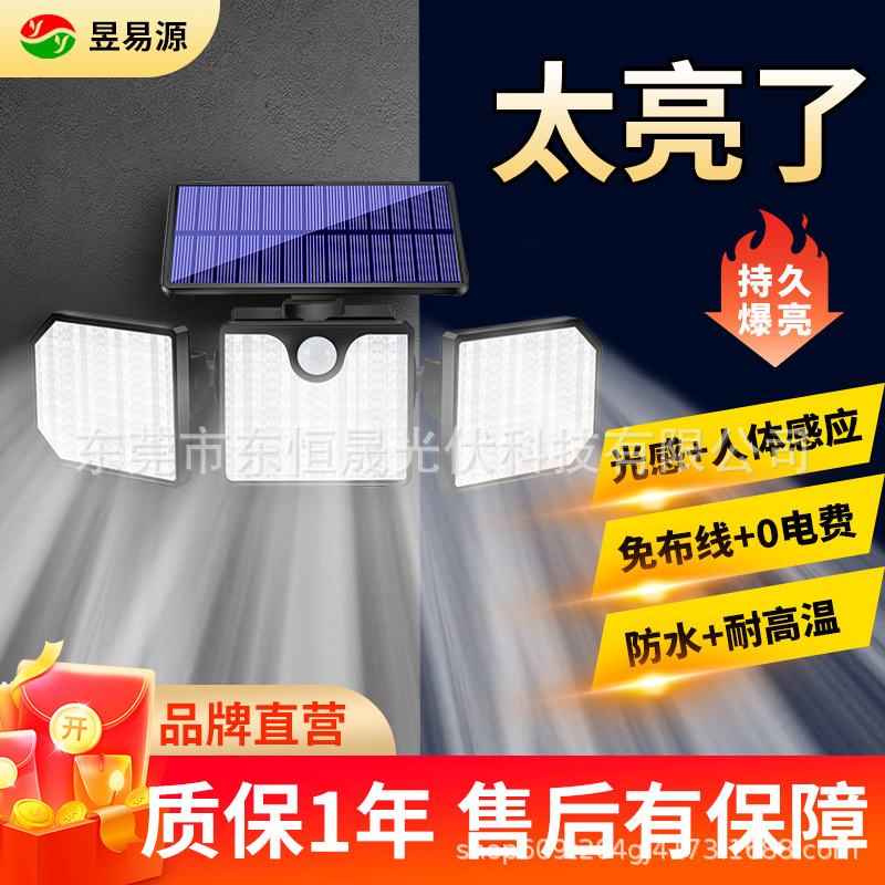 태양 벽 조명 야외 정원 조명 인체 적외선 센서 조명 정원 조명 3 헤드 라이트 LED 조명 정원 조명