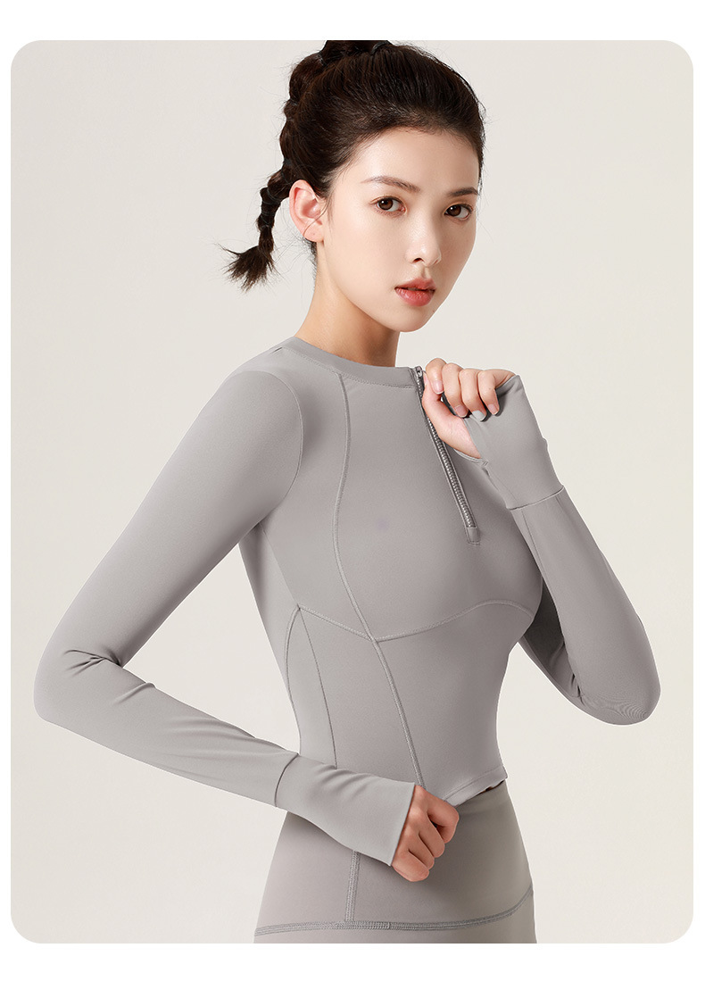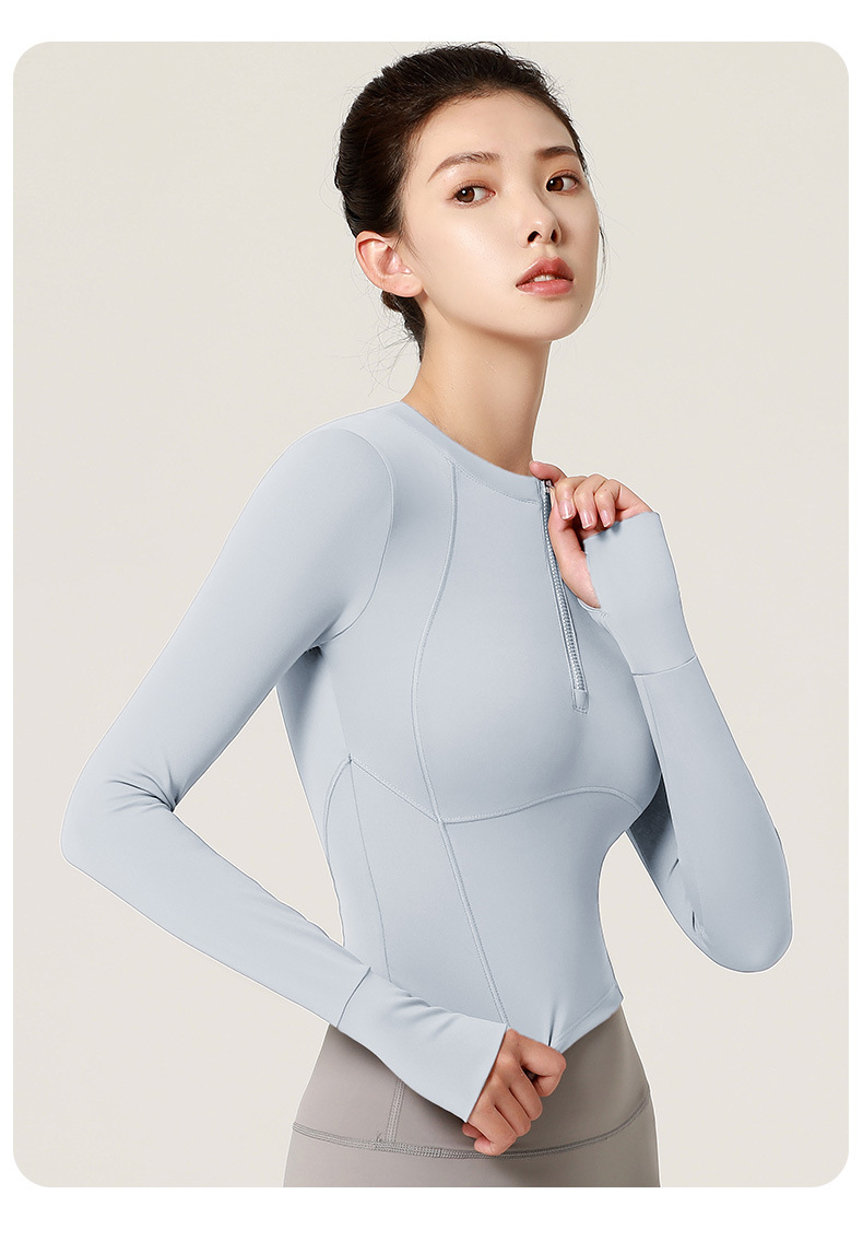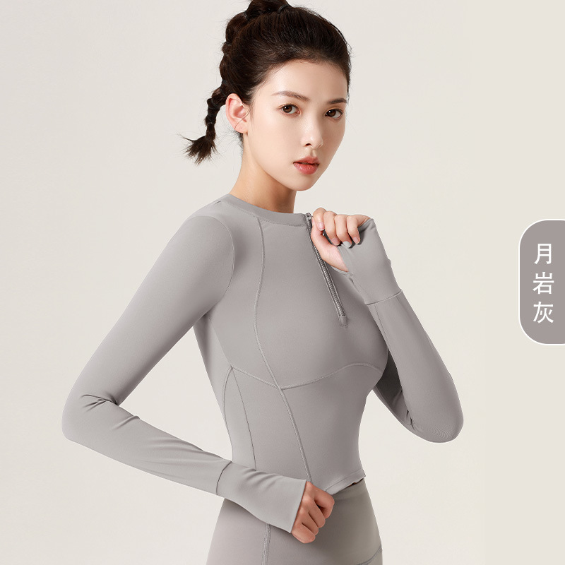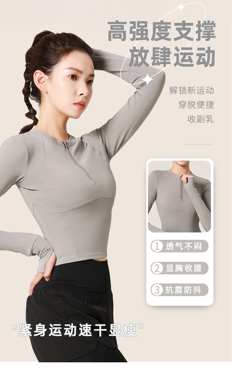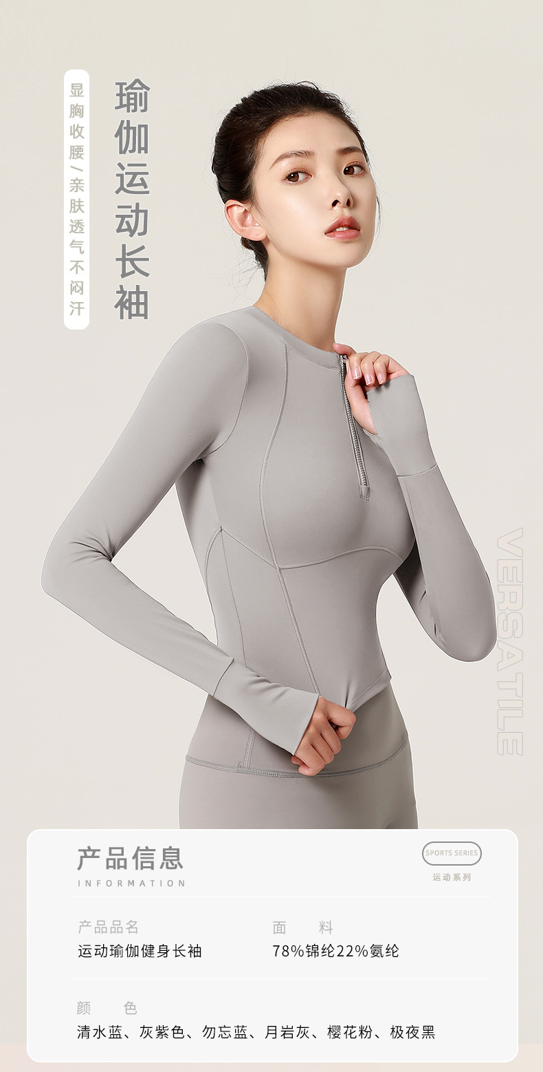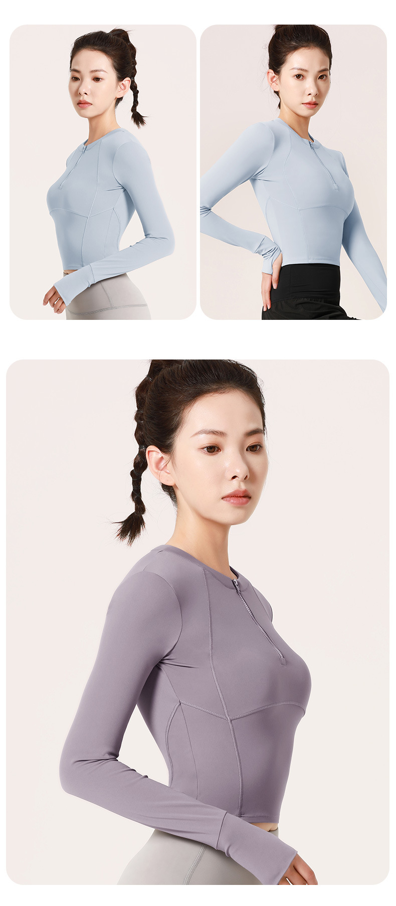 주이탕 고탄력 허리 조임 긴팔 스포츠 탑 누드 느낌 요가복 러닝 피트니스복