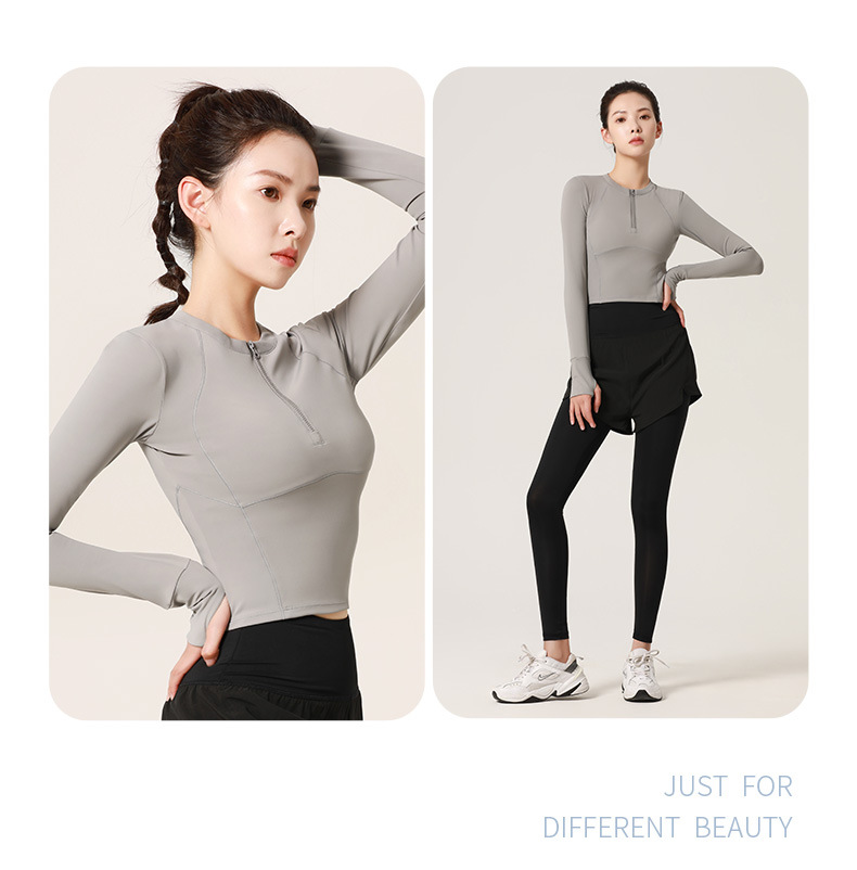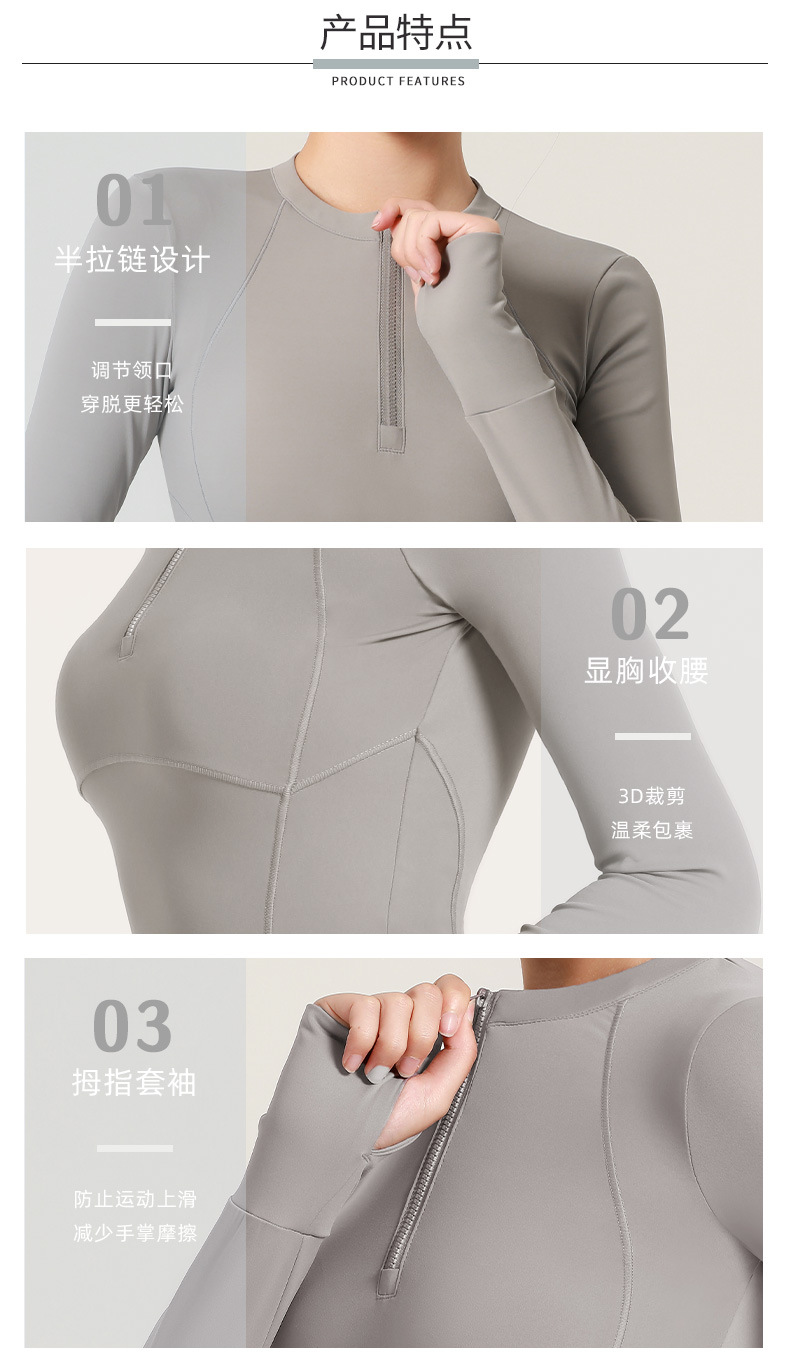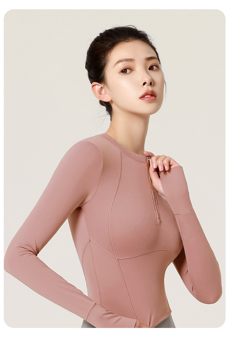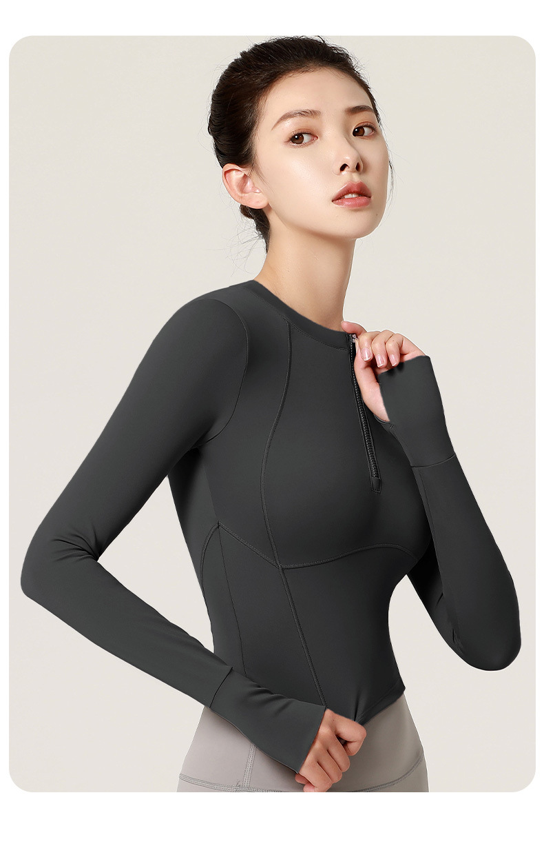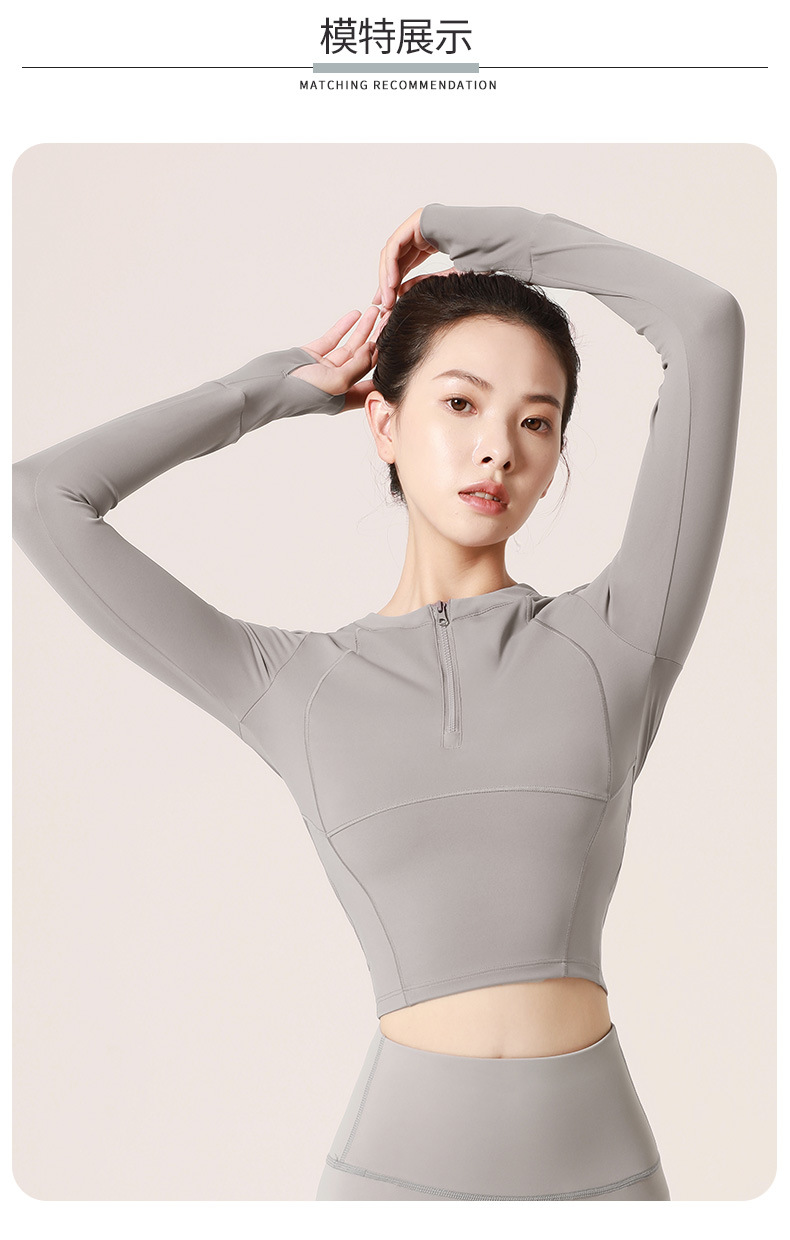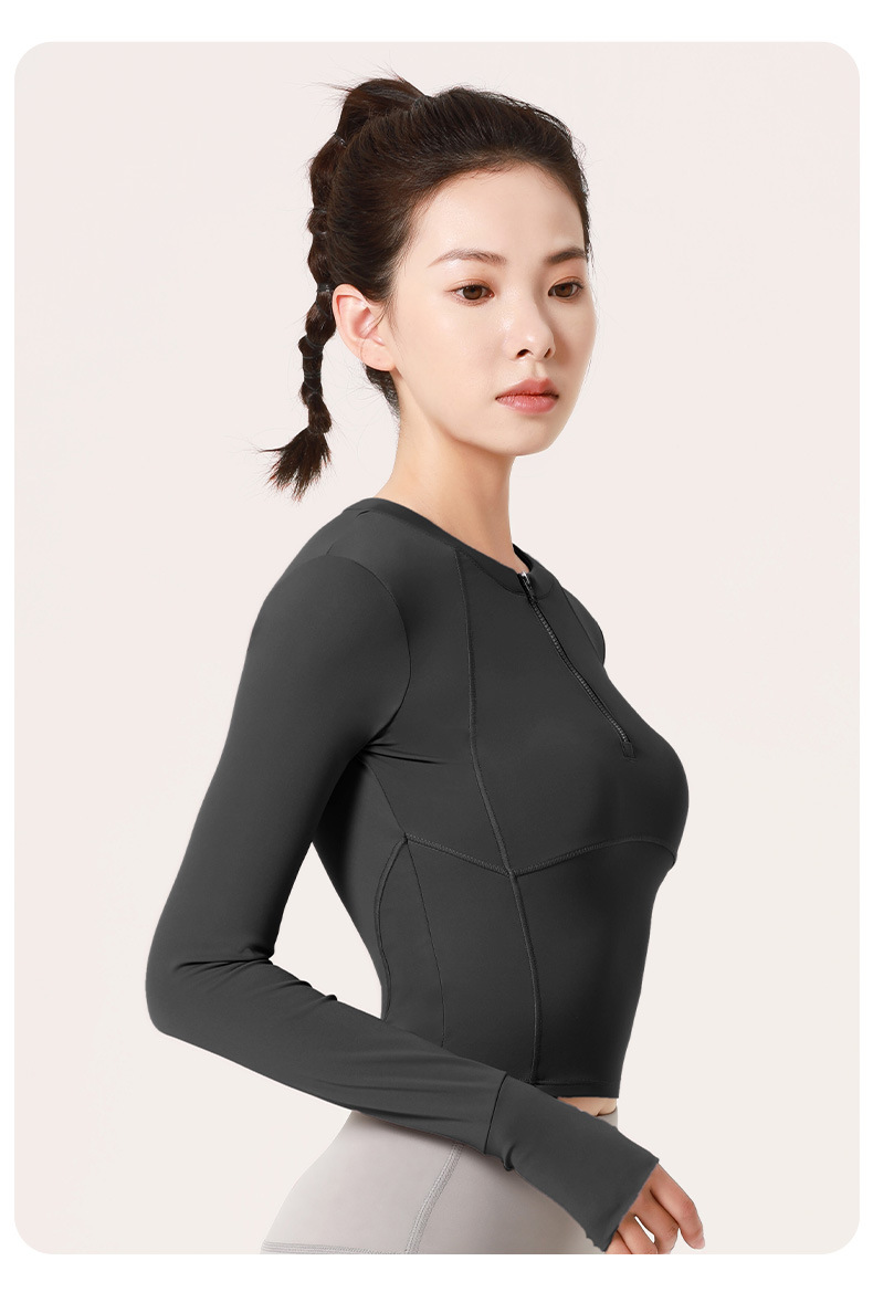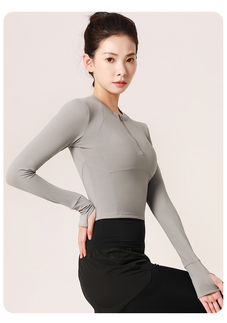 주이탕 고탄력 허리 조임 긴팔 스포츠 탑 누드 느낌 요가복 러닝 피트니스복
