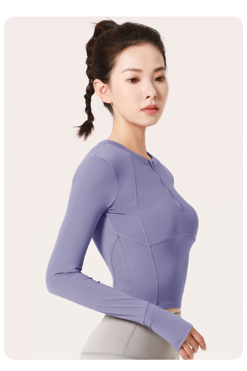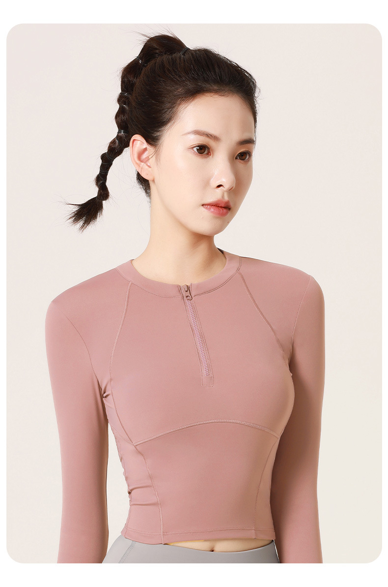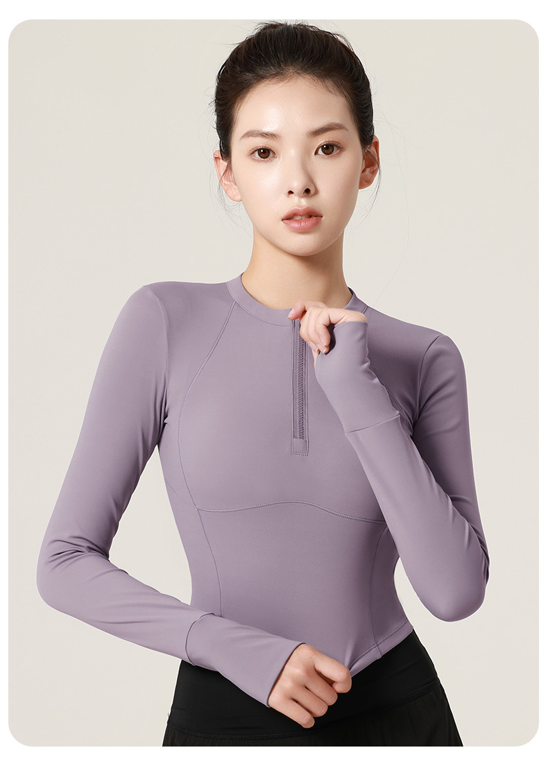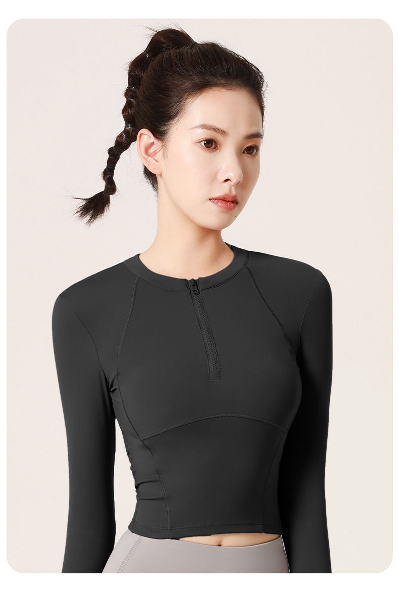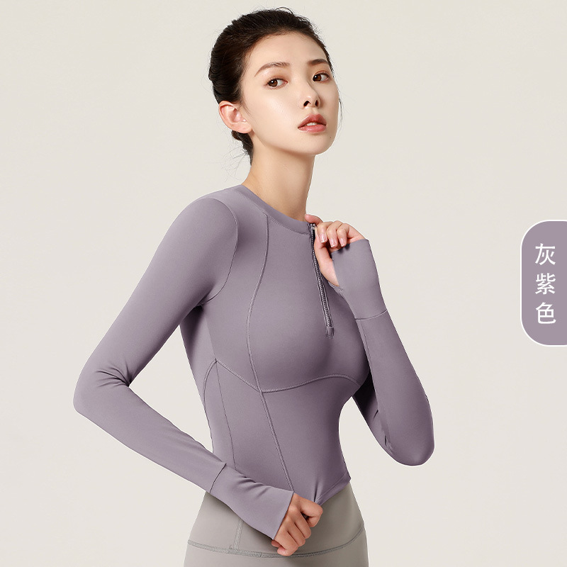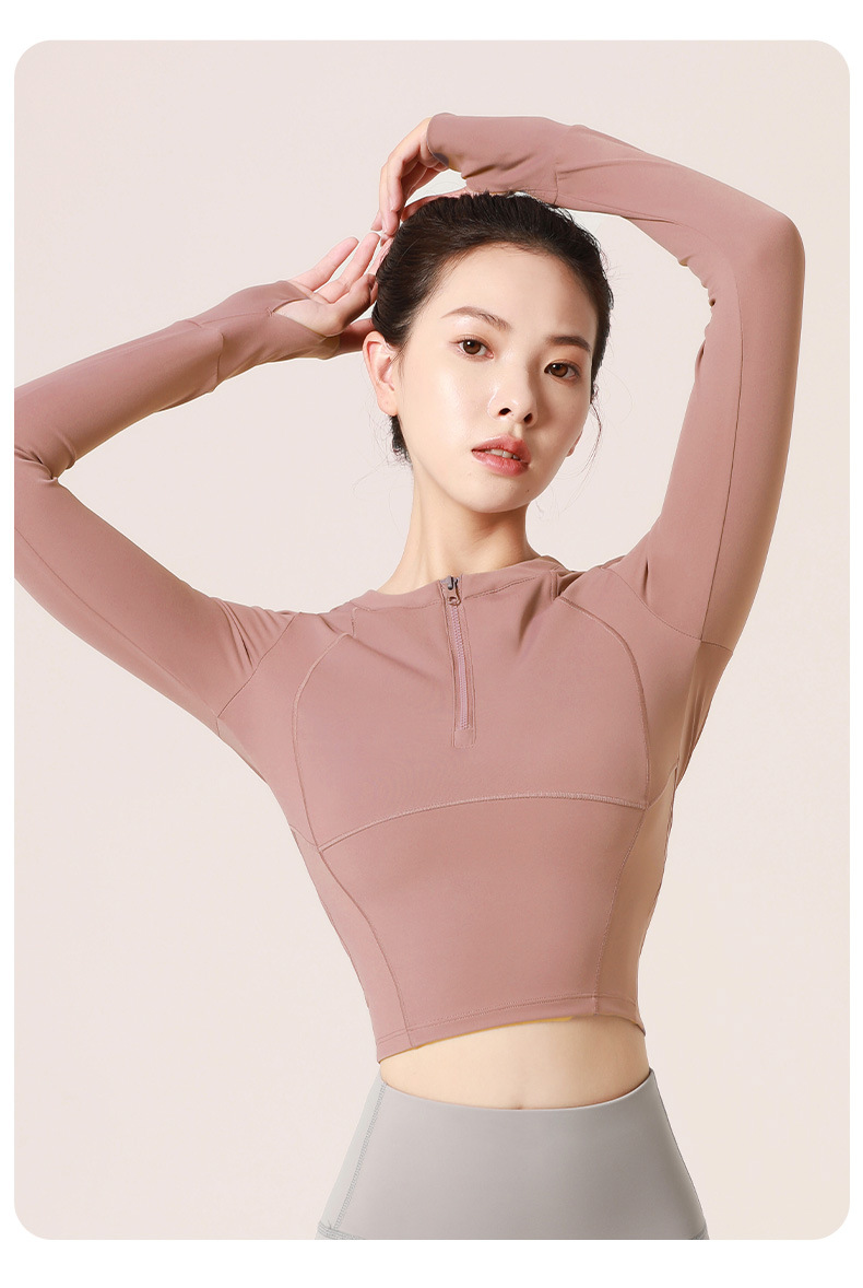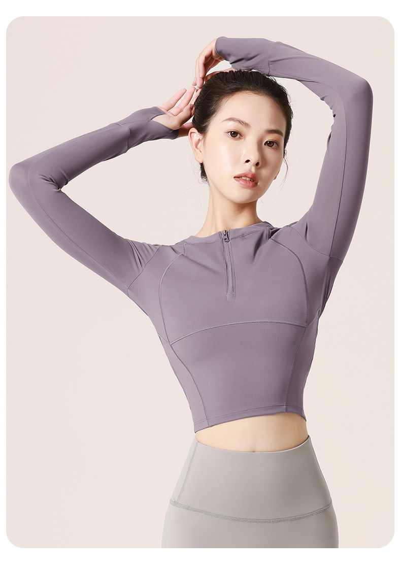 주이탕 고탄력 허리 조임 긴팔 스포츠 탑 누드 느낌 요가복 러닝 피트니스복