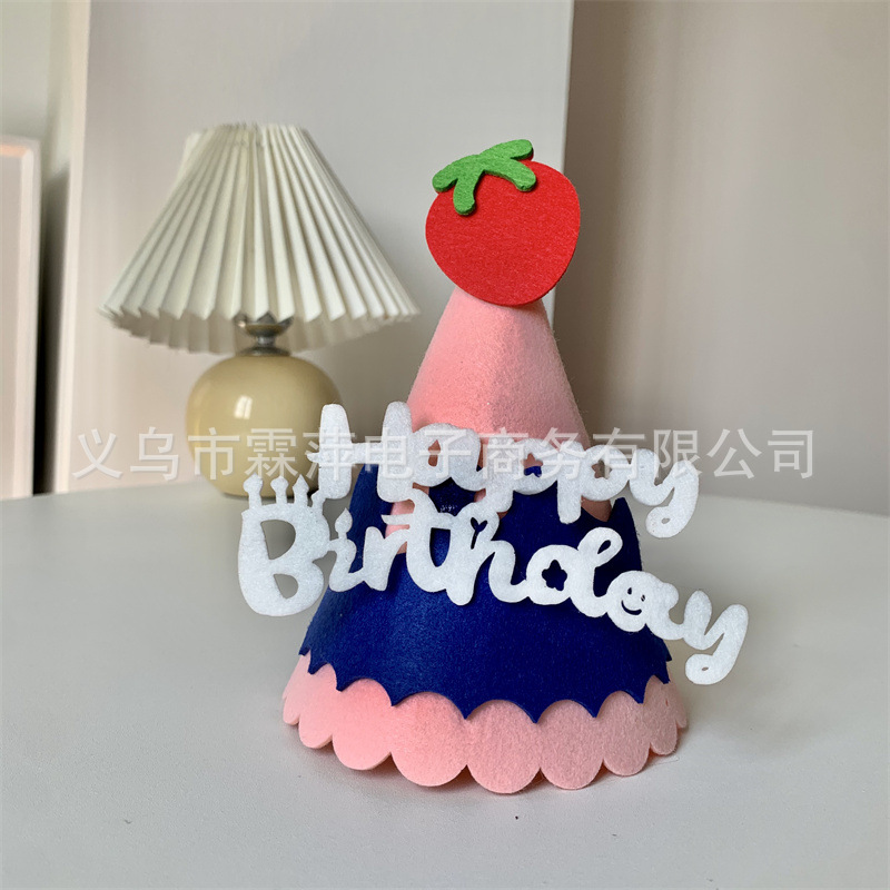 크로스-국경 한국 체리 부직포 모자 펠트 케이크 생일 모자 아기 어린이 1 년 파티 사진스토어 가기