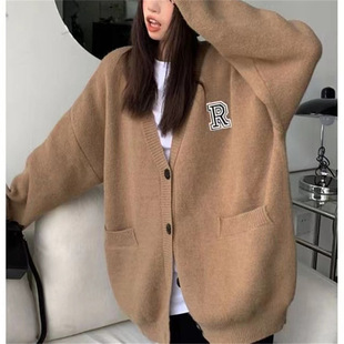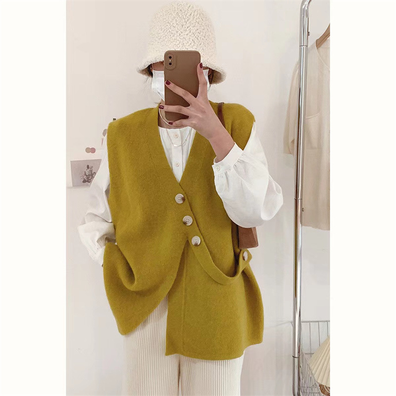V-넥 니트 조끼 카디건 여성 가을 2022 새로운 게으른 스타일 느슨한 민소매 허리띠 스웨터 코트스토어 가기