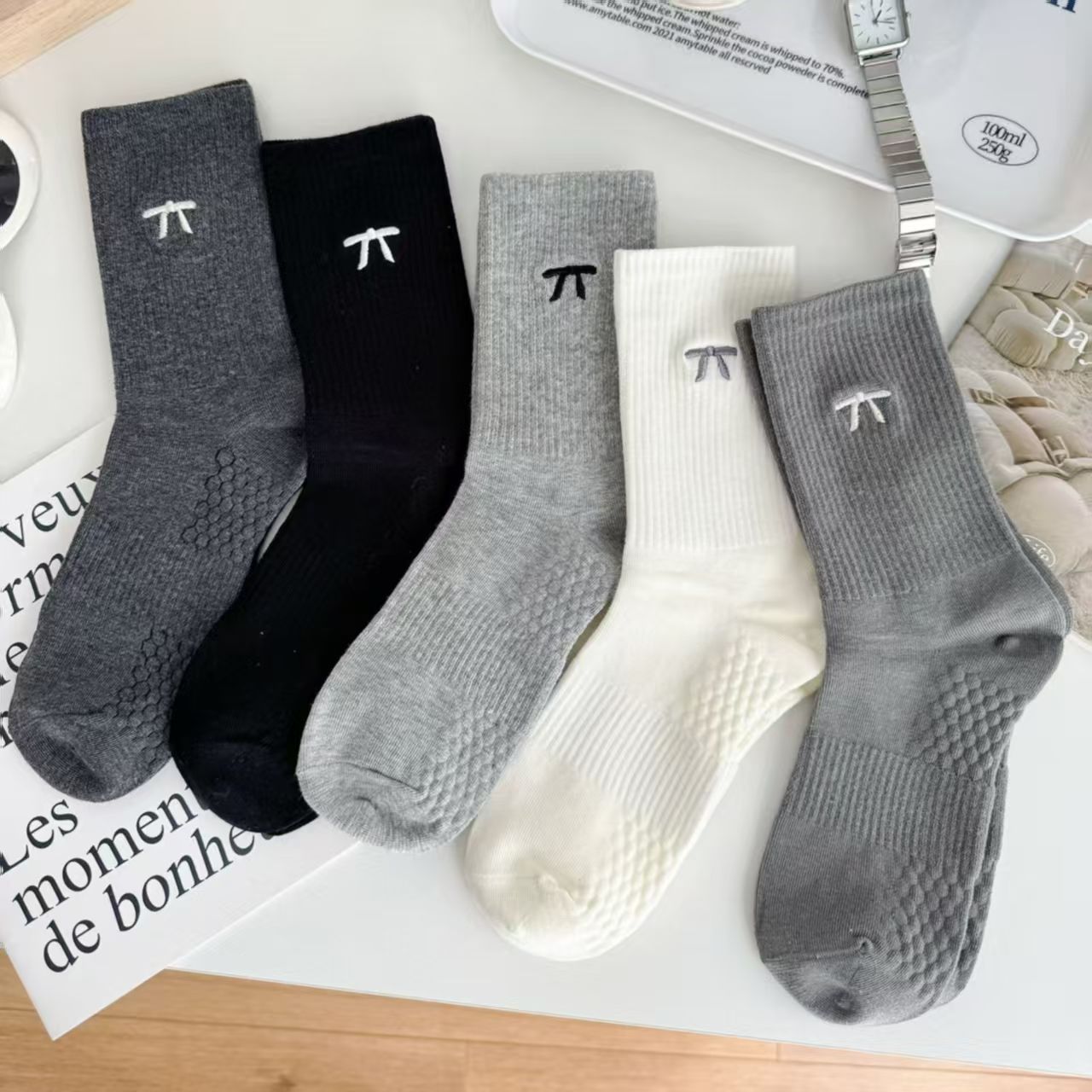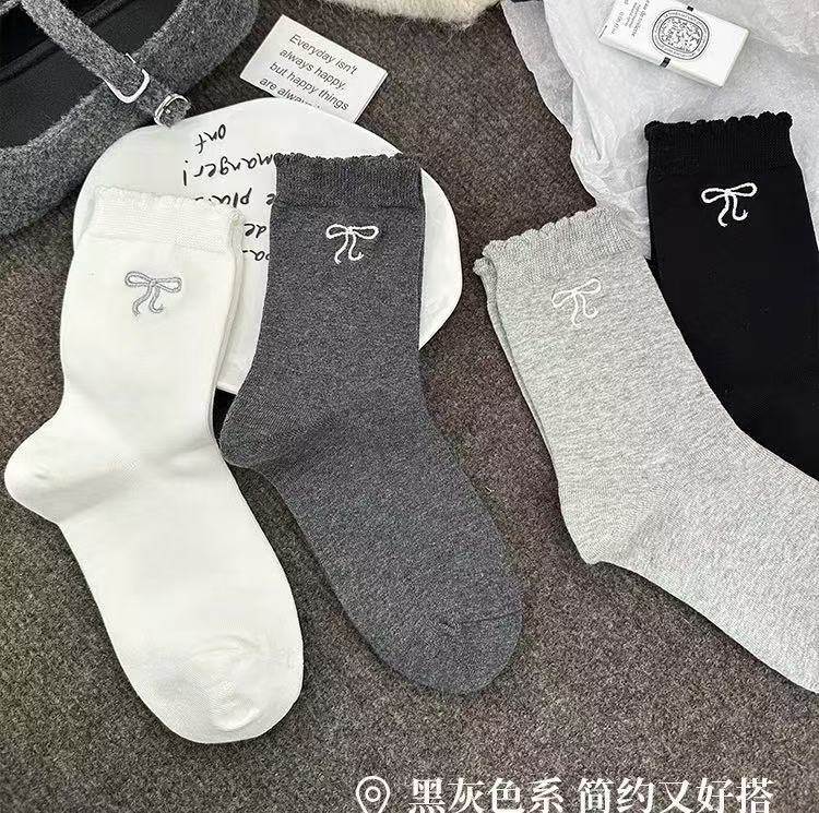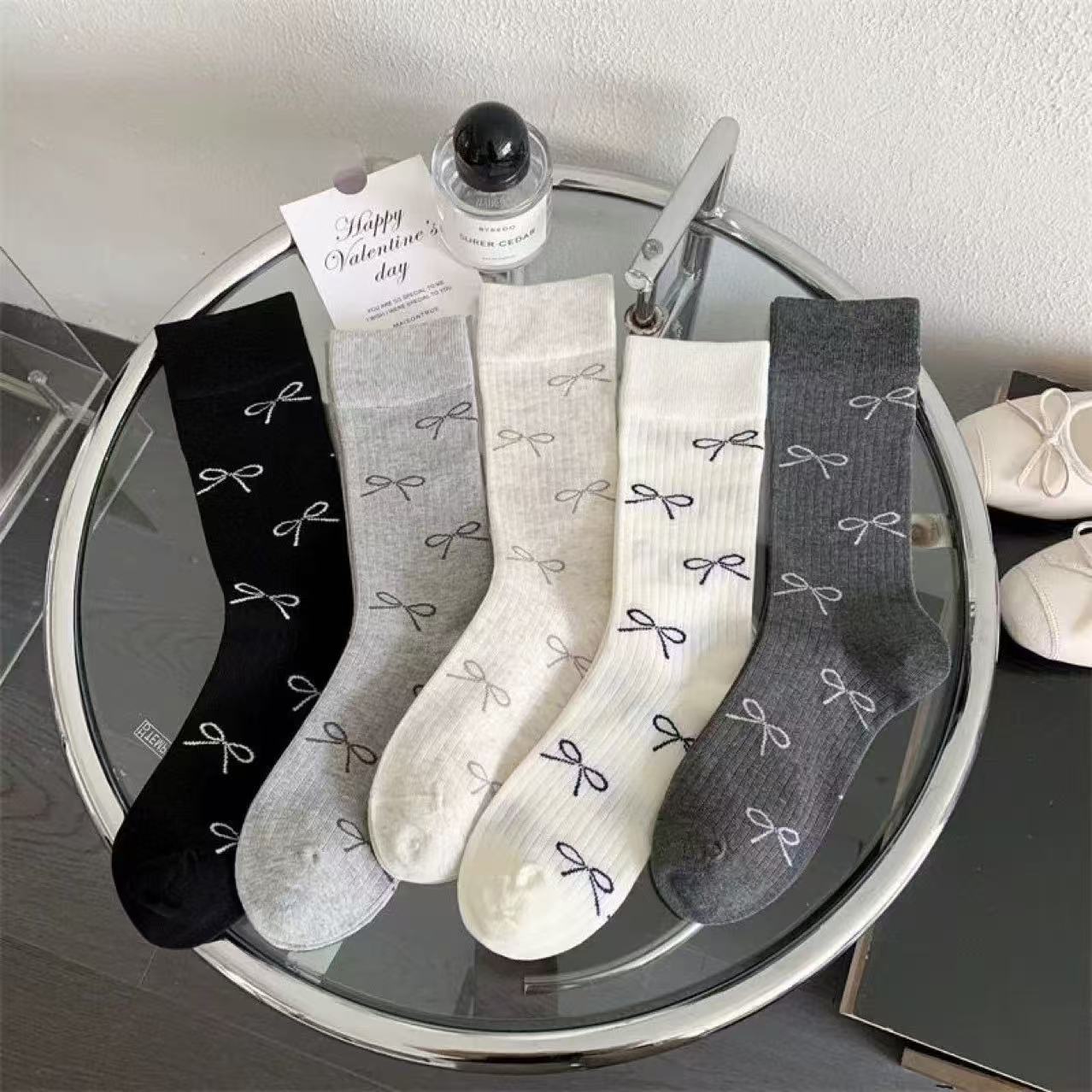 • 여성용 중간 길이 양말 (사색 리본)