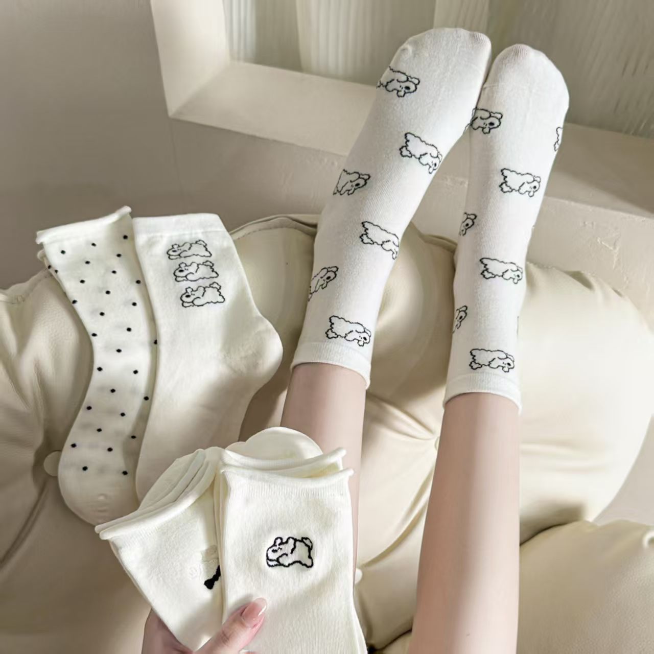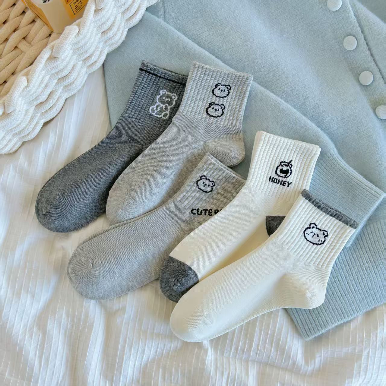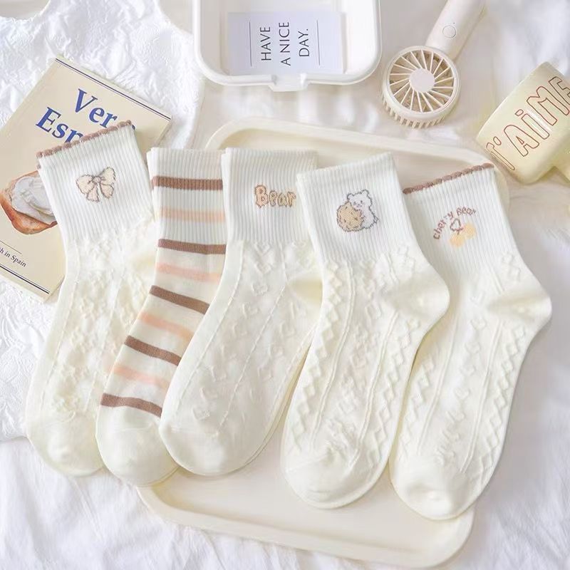 곰 양말 여자의 귀여운 일본 인스 타 그램 스타일 유행 한국 봄과 가을 여름 면 스택 양말 가을과 겨울 스타킹스토어 가기