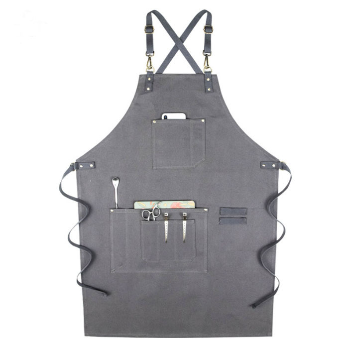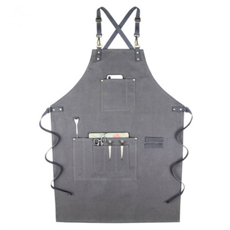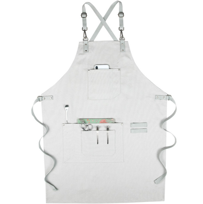 맞춤형 로고가 있는 크로스보더 캔버스 앞치마, 레스토랑, 플로리스트, 미용사, 커피숍 작업복 앞치마 도매 맞춤 제작