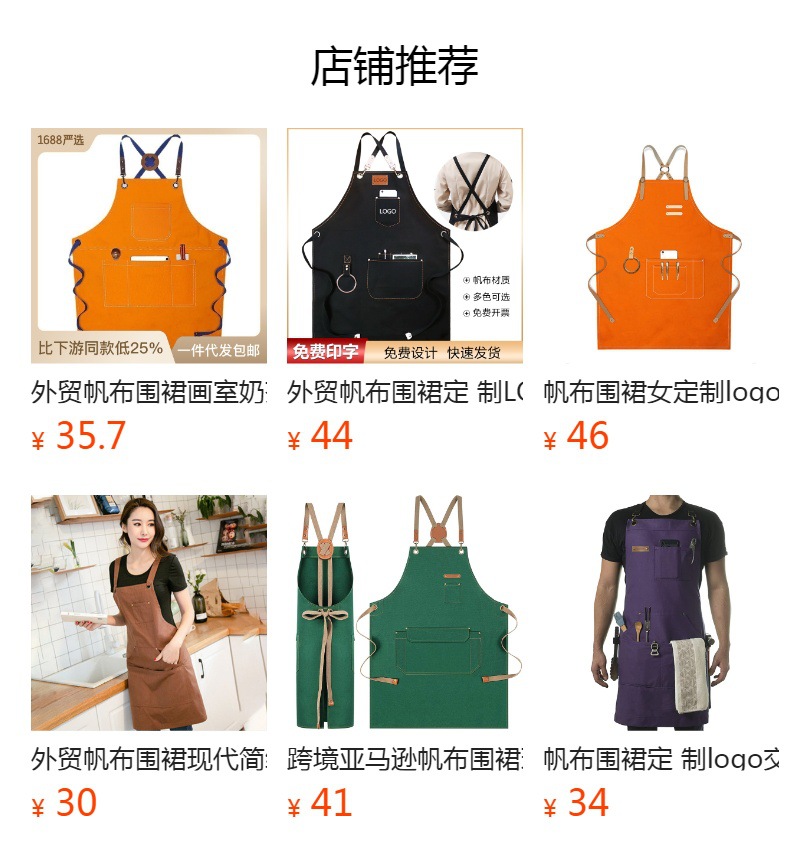 맞춤형 로고가 있는 크로스보더 캔버스 앞치마, 레스토랑, 플로리스트, 미용사, 커피숍 작업복 앞치마 도매 맞춤 제작스토어 가기