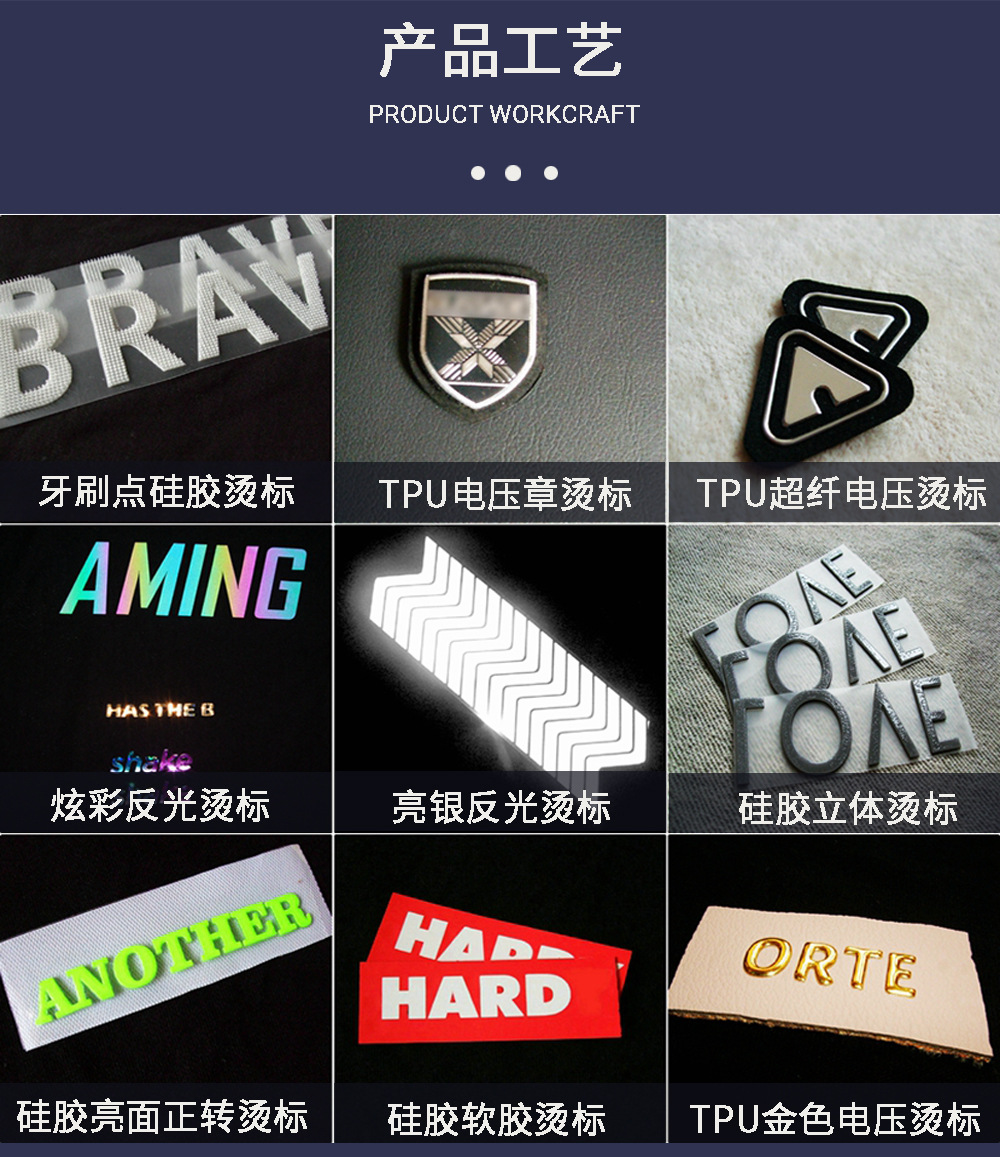 上海传缇纺织科技有限公司生产服装用硅胶转印标,硅胶烫标,布底植胶商标,布面植胶商标,布底植绒商标,布底植胶硅胶标,硅胶热压标,硅胶热烫标,硅胶热转印标,硅胶厚板标,热转印商标,热转印标,热转印洗标,热转印烫标,烫标,热烫标,内衣转印标签,厚版转印标,硅胶烫标,硅胶热转印标,硅胶转印标,裁片热烫加工,裁片烫印加工等产品。
