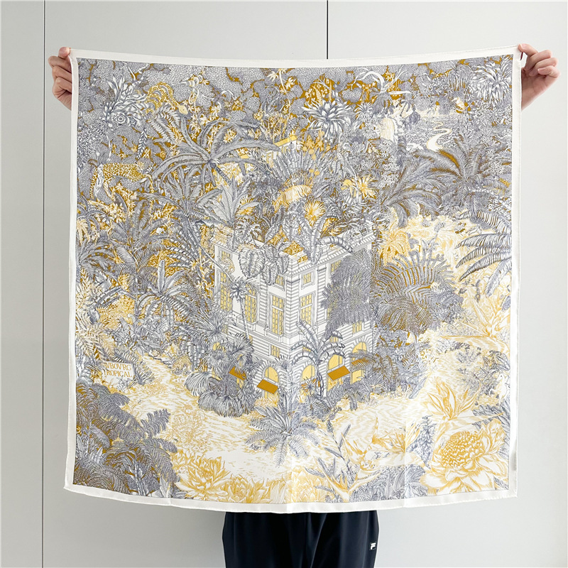 실크 트윌! 일본 베이지 푸바오 우아한 뽕나무 실크 스카프 여성의 봄과 가을 티 실크 대형 스퀘어 스카프스토어 가기