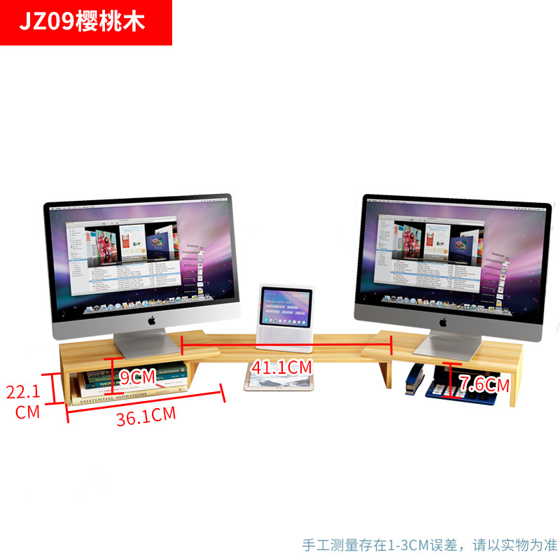 나무 컴퓨터 상승 랙 모니터 더블 스크린 브래킷 노트북베이스 데스크탑 주최자 보관함 보관 랙