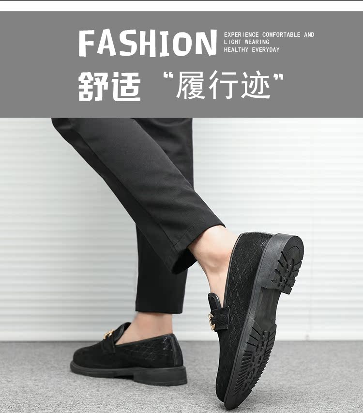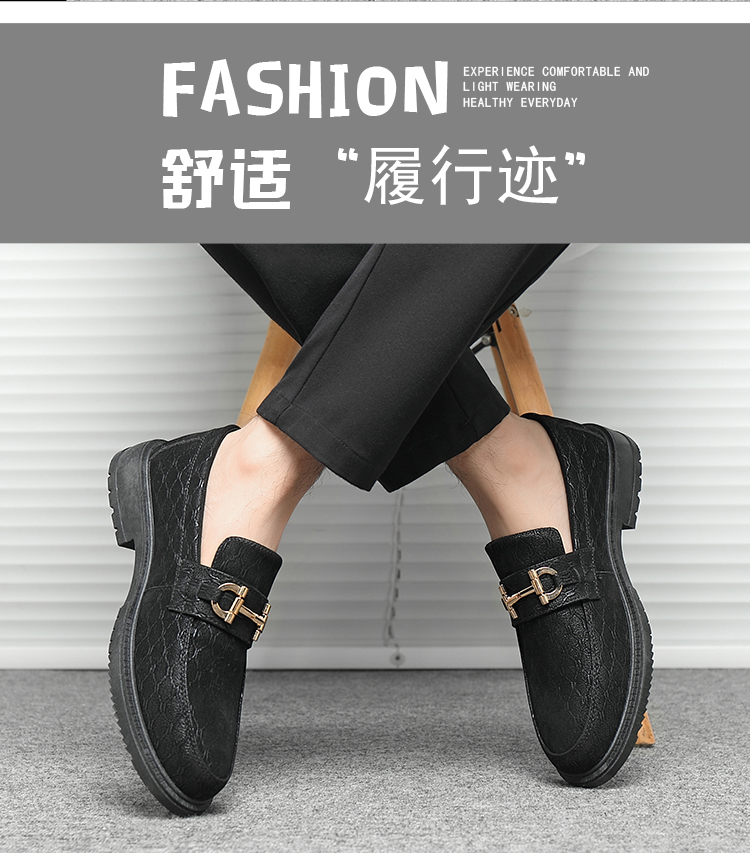 2022春秋季新款休闲皮鞋懒人一脚蹬黑色商务正装工作鞋子男乐福鞋
