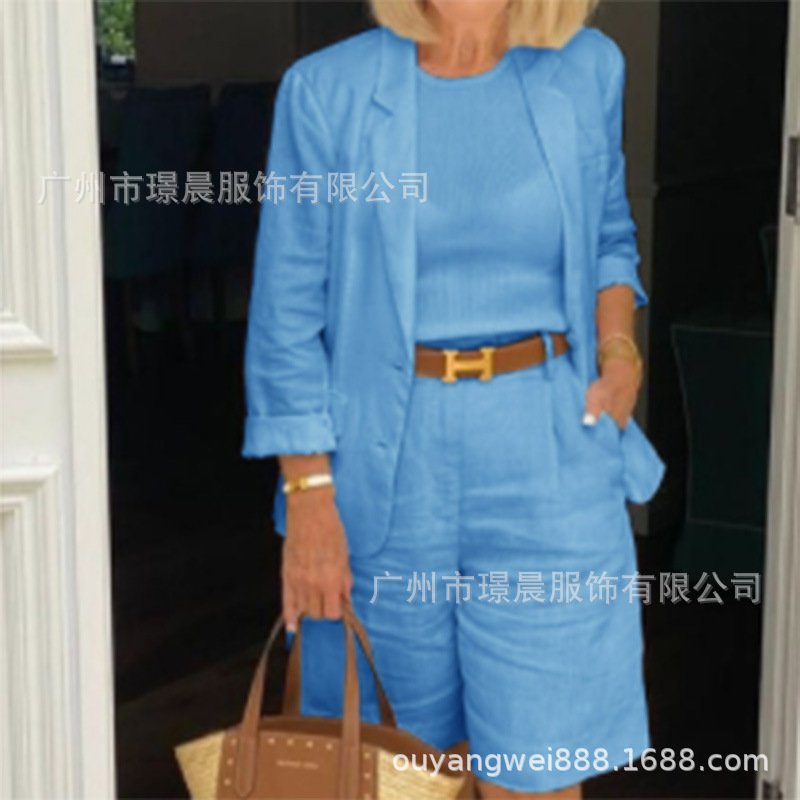 아마존 폭발 2022 가을 국경 새로운 대외 무역 여성 카디건 재킷 반바지 2 종 세트