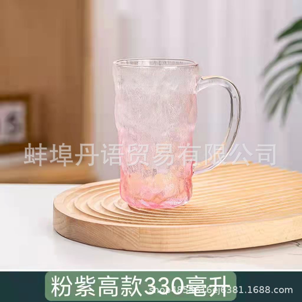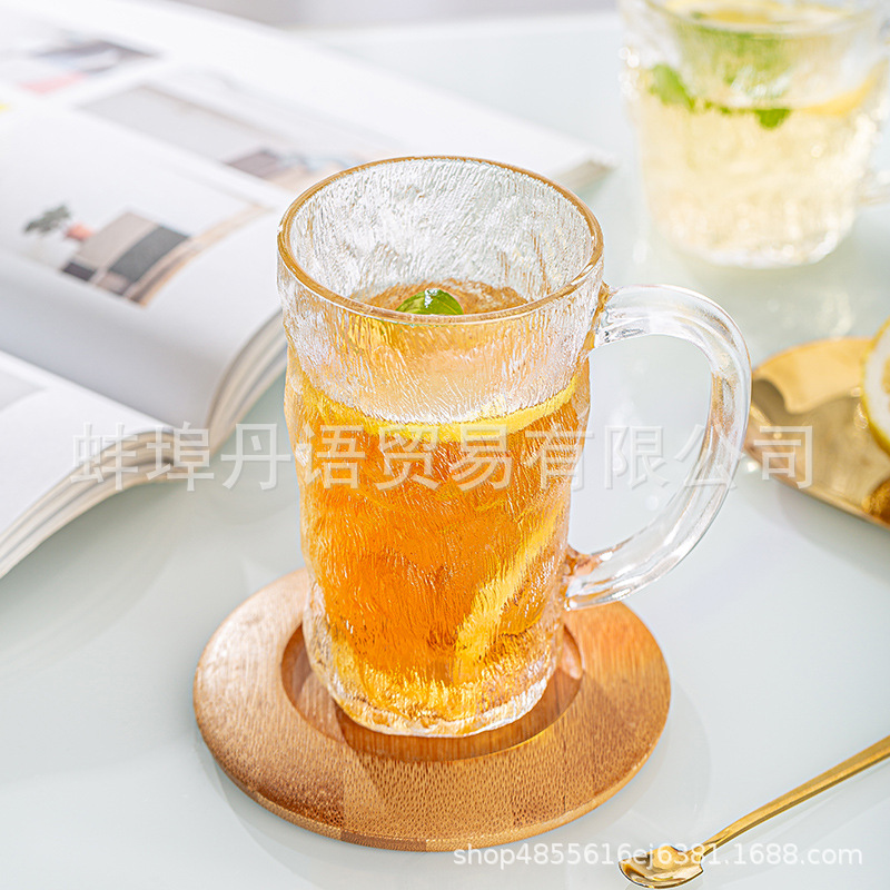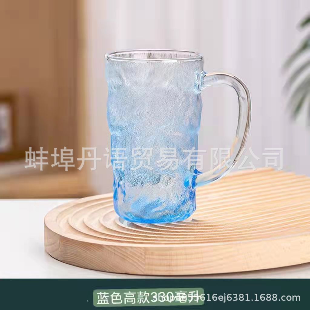 북유럽 스타일 유리 빙하 컵 맥주 컵 음료 컵 끓는 물 가정용 물 컵 여성용 젖빛 컵 핸들 컵스토어 가기