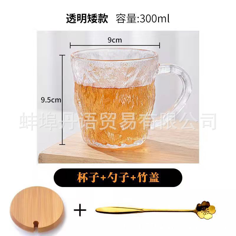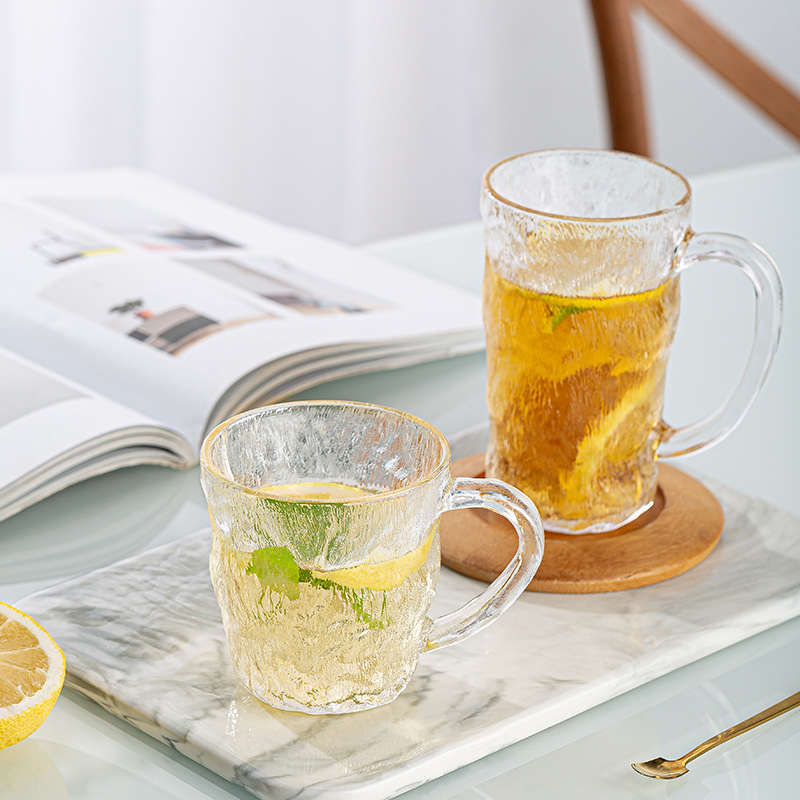 북유럽 스타일 유리 빙하 컵 맥주 컵 음료 컵 끓는 물 가정용 물 컵 여성용 젖빛 컵 핸들 컵